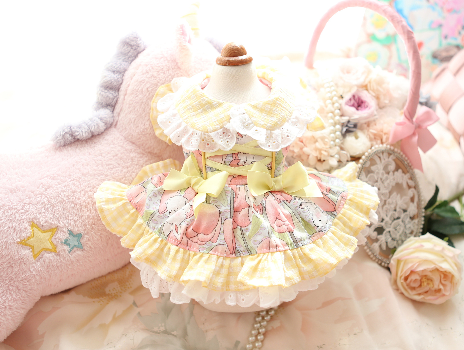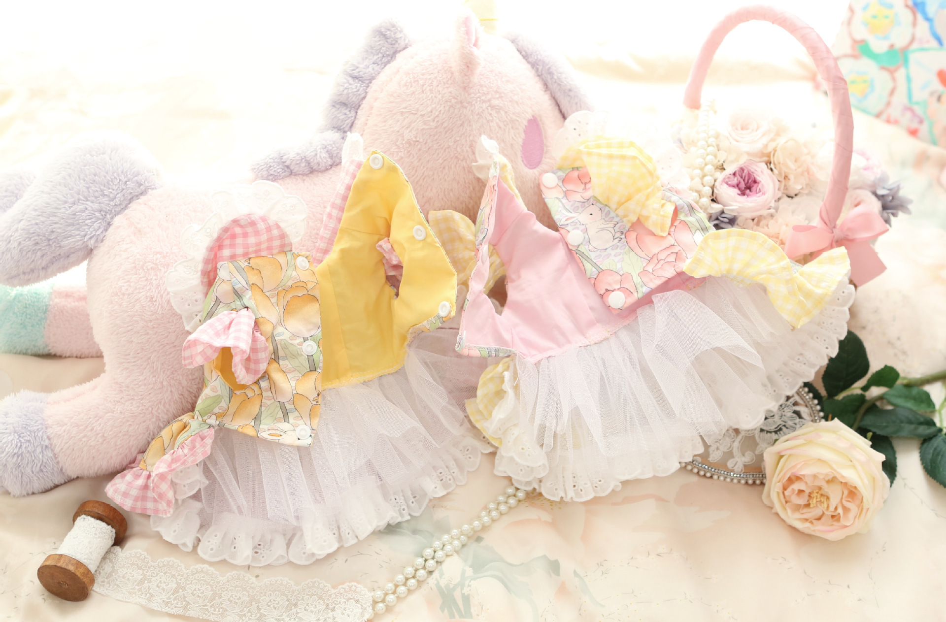 봄 여름 신작 애완동물 의류, 강아지 옷, 고양이 연인, 토끼 투투 스커트, 테디 소형견, 헤비듀티 마이쿠