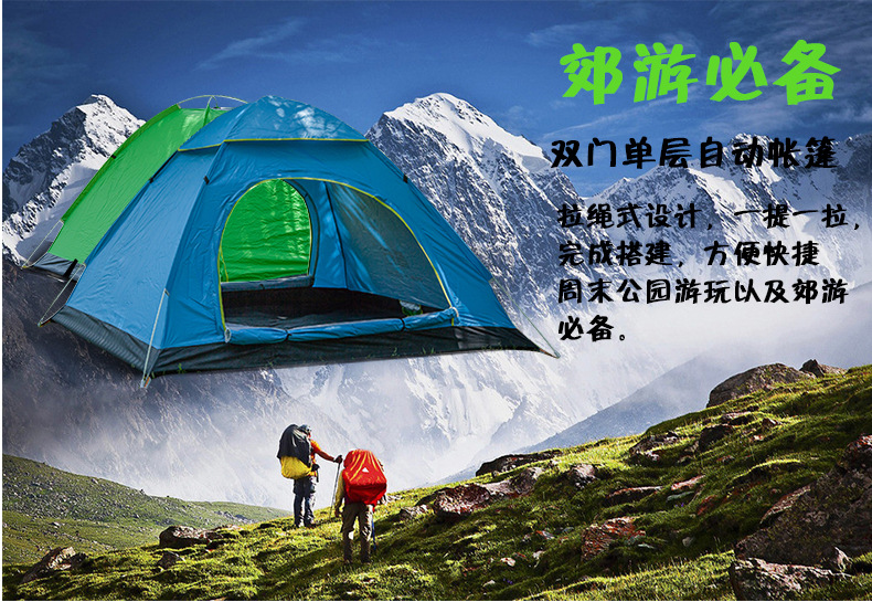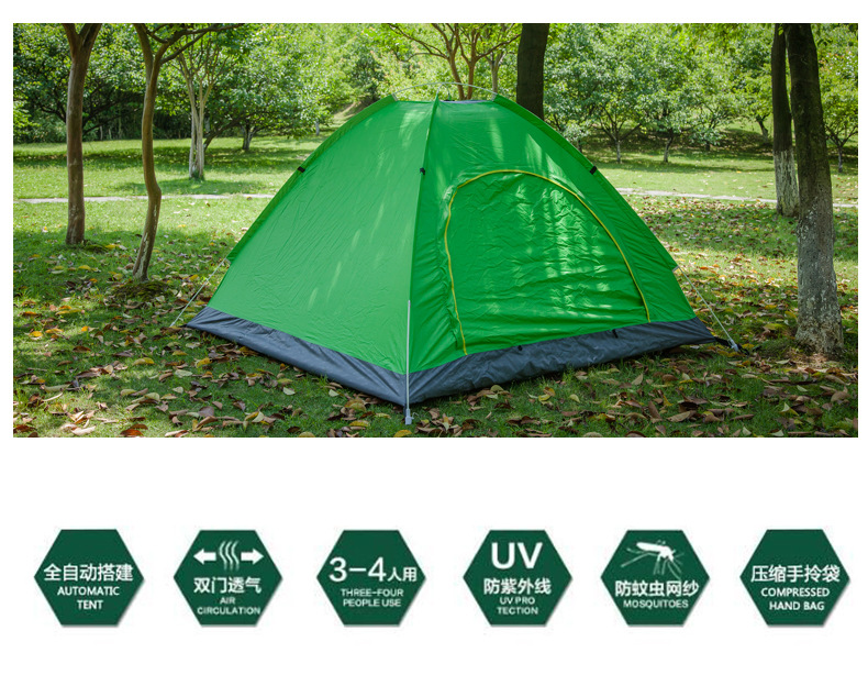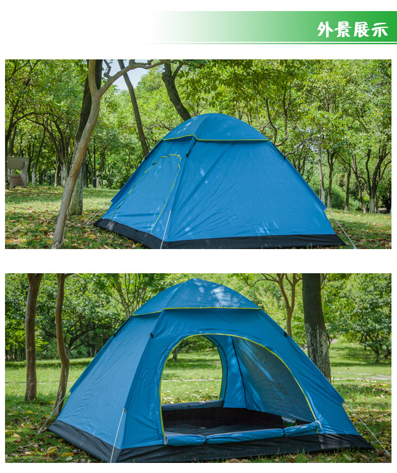 맞춤형 설치가 필요 없는 홈 캠핑 텐트, 완전 자동 야외 캠핑 두꺼운 텐트, 3~4인용 빠른 투척 모기장