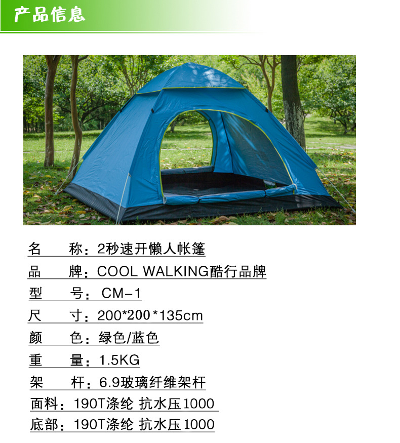 맞춤형 설치가 필요 없는 홈 캠핑 텐트, 완전 자동 야외 캠핑 두꺼운 텐트, 3~4인용 빠른 투척 모기장스토어 가기