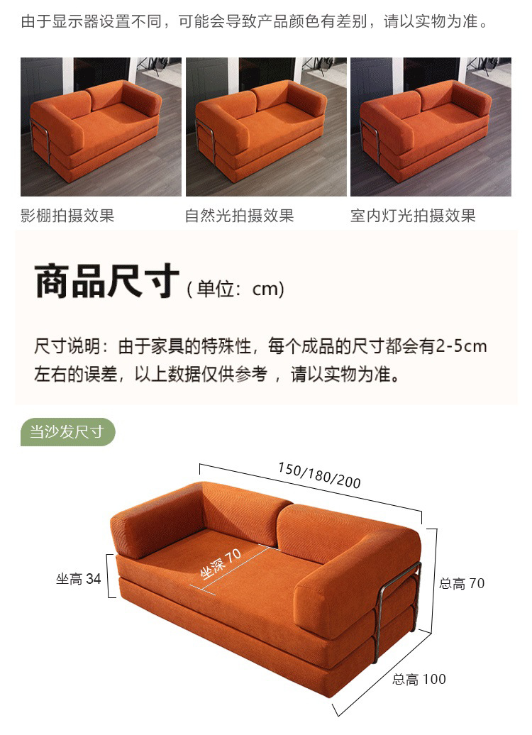 압축 소파 베드, 풀 스펀지 소파, 코듀로이 소파, 프리 콤비네이션 패브릭, 소형 가정용 이중 목적 접이식 소파