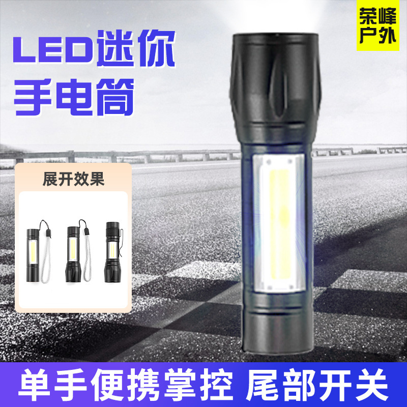 가정용 조명 작은 손전등 led 야외 미니 캠핑 라이트 텔레스코픽 초점 COB 사이드 라이트 키 체인 손전등