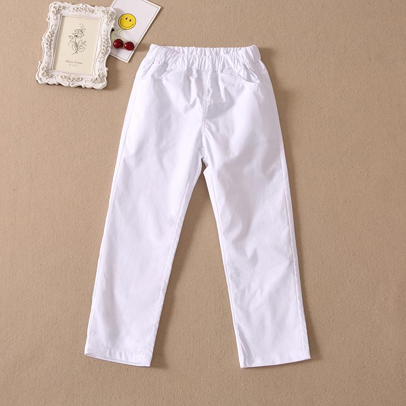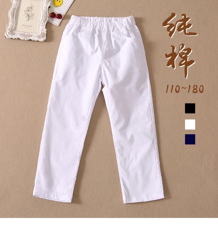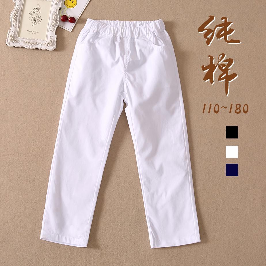 남아용 흰색 긴 바지, 순백색 캐주얼 면, 중대형 아동용 흑백 네이비 블루 봄, 가을스토어 가기