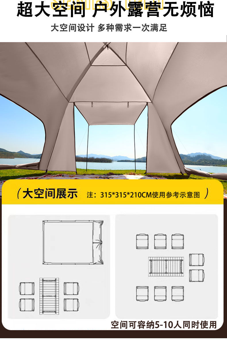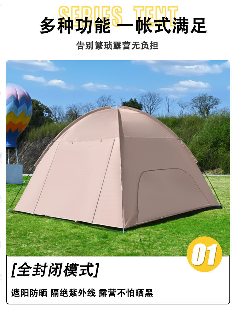돔 캐노피 텐트 야외 캠핑 휴대용 방풍 및 방수 장비 전체 세트 캠핑을위한 초대형 태양 보호 천막스토어 가기