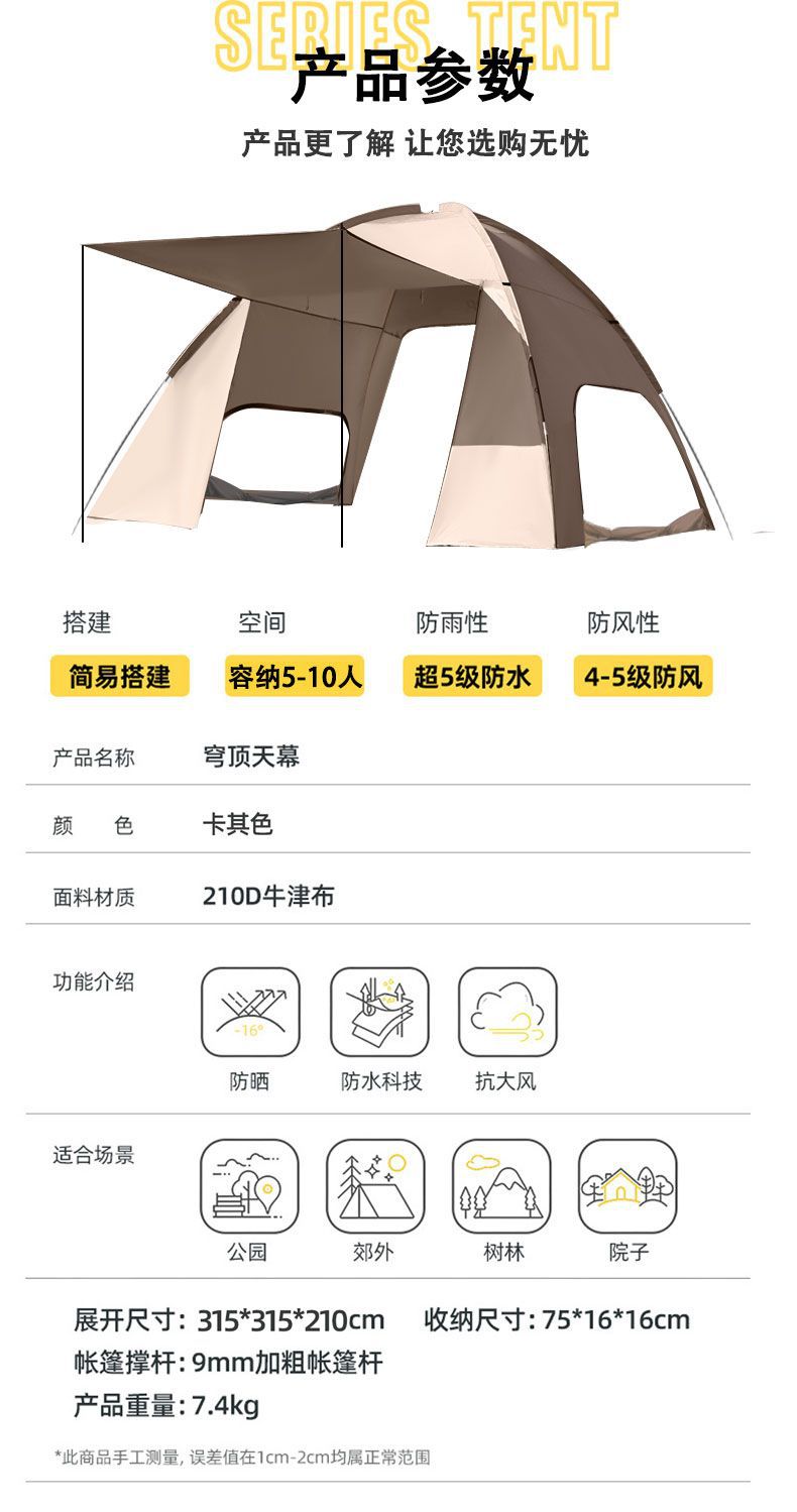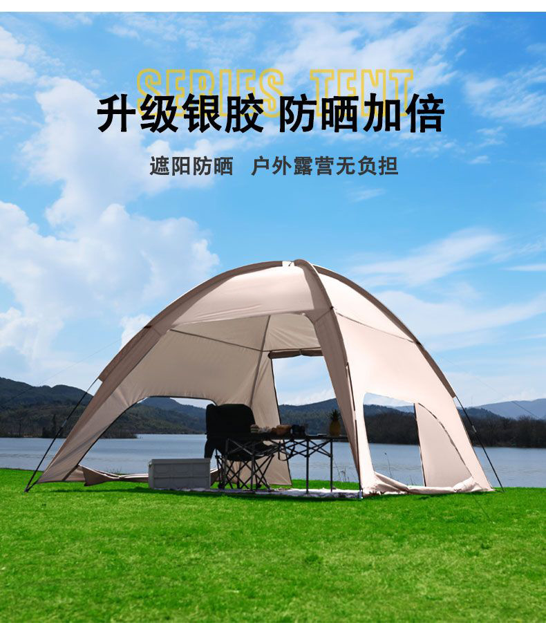 돔 캐노피 텐트 야외 캠핑 휴대용 방풍 및 방수 장비 전체 세트 캠핑을위한 초대형 태양 보호 천막