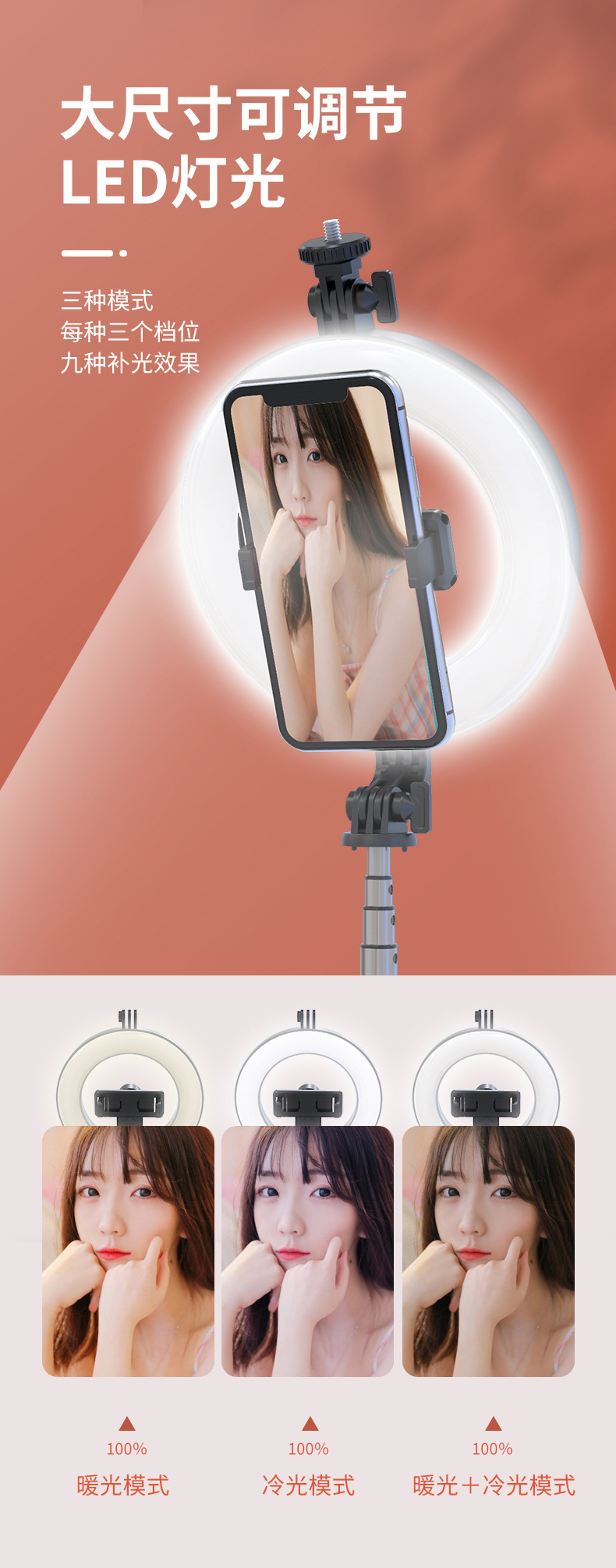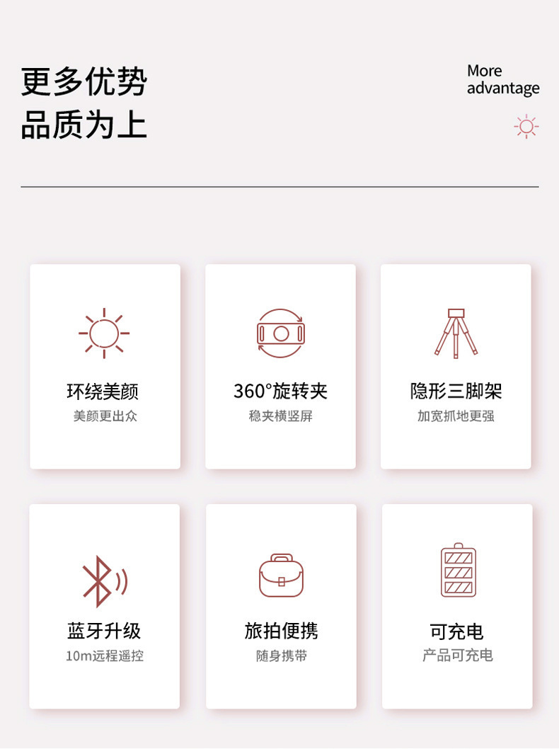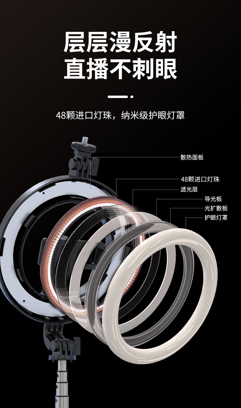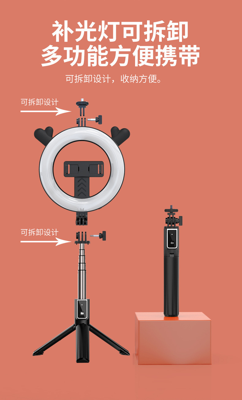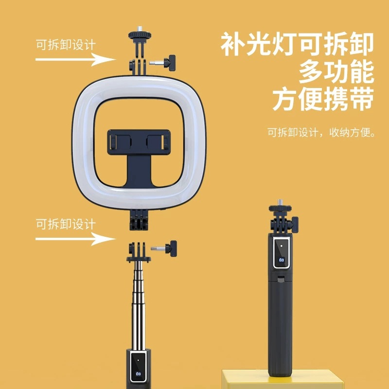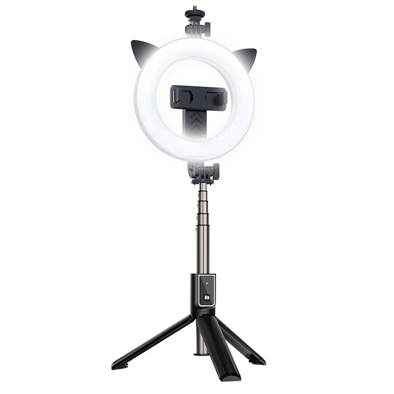 새로운 P40D 휴대용 무선 원격 제어 통합 6inch 라운드 뷰티 휴대 전화 라이브 방송 브래킷 필 라이트 셀카 스틱