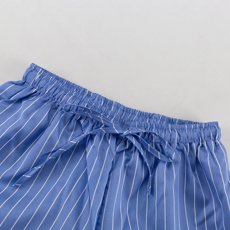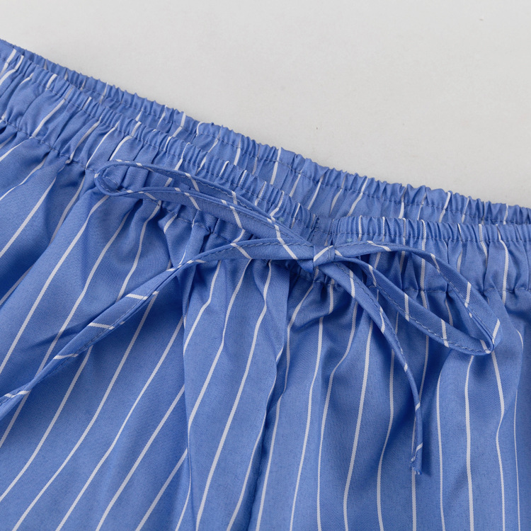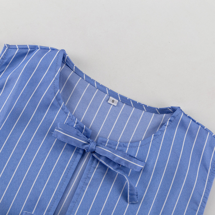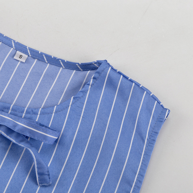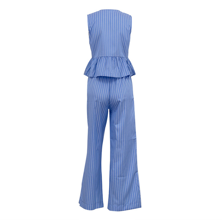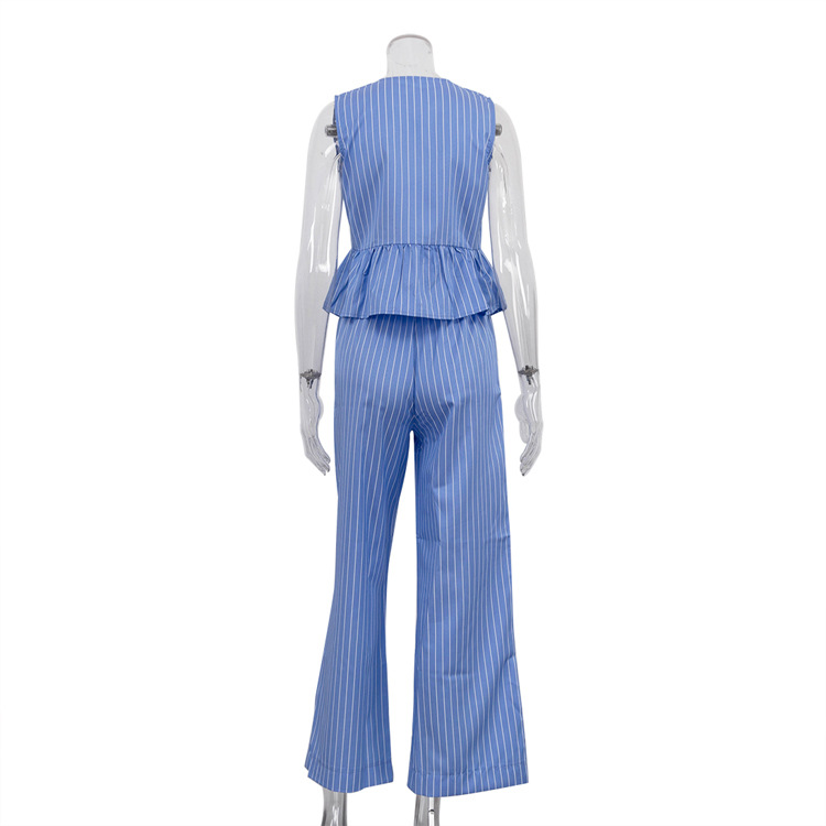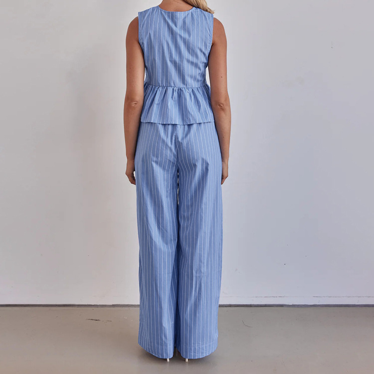 패션 스트라이프 조끼 세트 2025 새로운 라운드 넥 보우 민소매 탑 루즈 와이드 레그 팬츠 투피스 세트스토어 가기