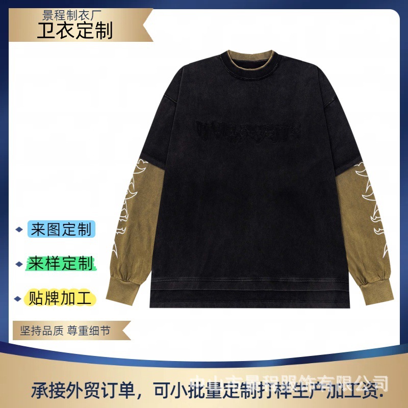 맞춤형 하이 스트리트 아메리칸 스플라이스 레터 자수 프린트 라운드 넥 스웨트 셔츠 남성 트렌디 브랜드 루즈 캐주얼 긴팔 티셔츠스토어 가기