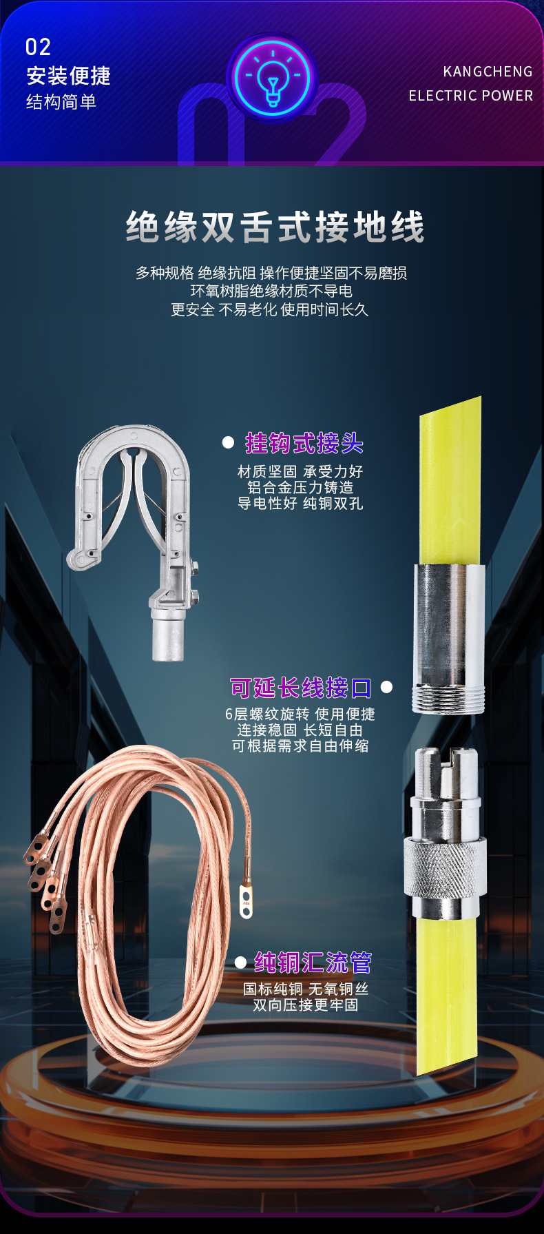 이중 혼 접지선 접지봉 전력 구조 0.4KV-500KV 이중 스프링 전원 후크 유형 고압 및 저압스토어 가기
