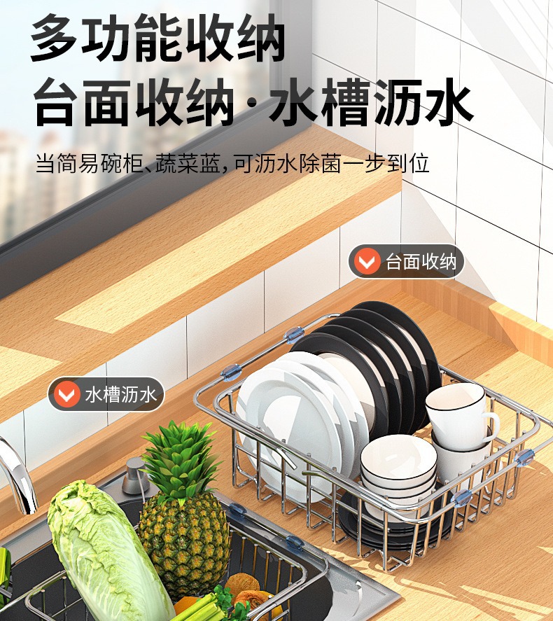 싱크대 배수 바구니 스테인레스 스틸 싱크대 식기 세척대 텔레스코픽 주방 선반 식기 보관함 주방 용품스토어 가기