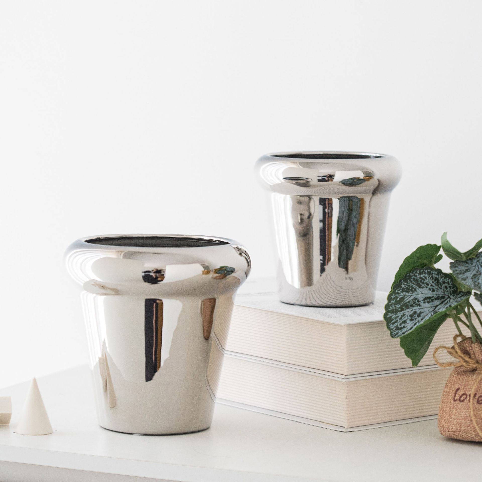 북유럽 인 나비 난초 화분, 고급스럽고 가벼운 럭셔리 실버 작은 화분, 다육 행운의 나무 칼라란트 심기 화분