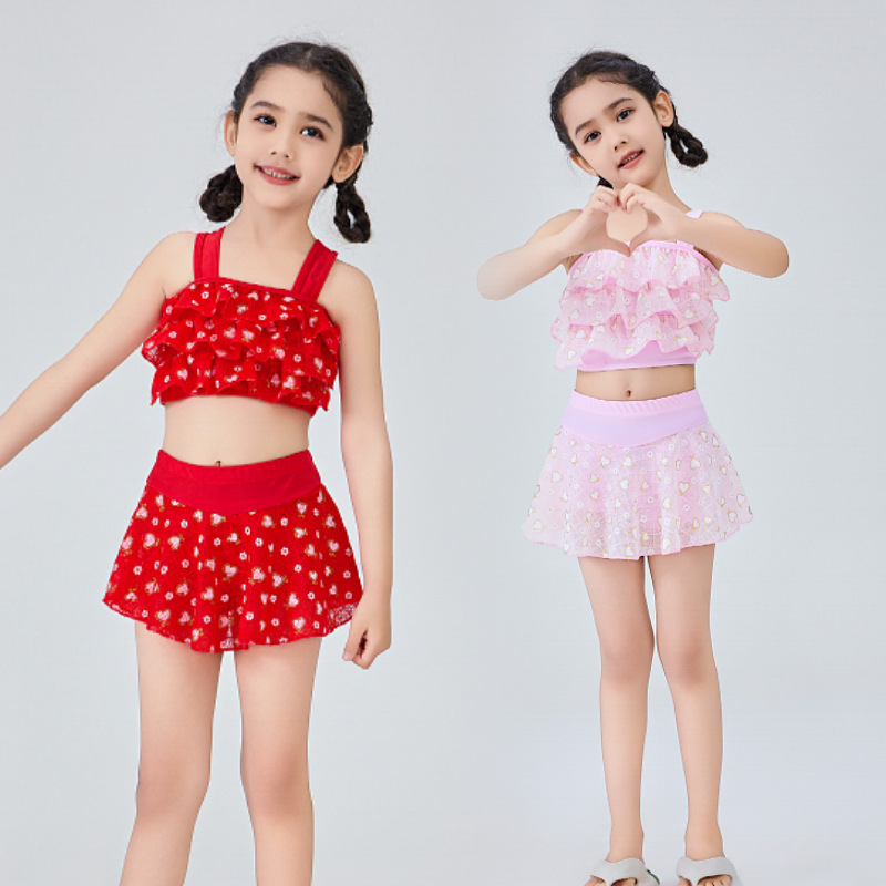 여름 새로운 수영 소녀 귀여운 공주 스타일 스플릿 수영복 중소형 어린이를위한 고탄성 통기성 어린이 수영복 공장스토어 가기