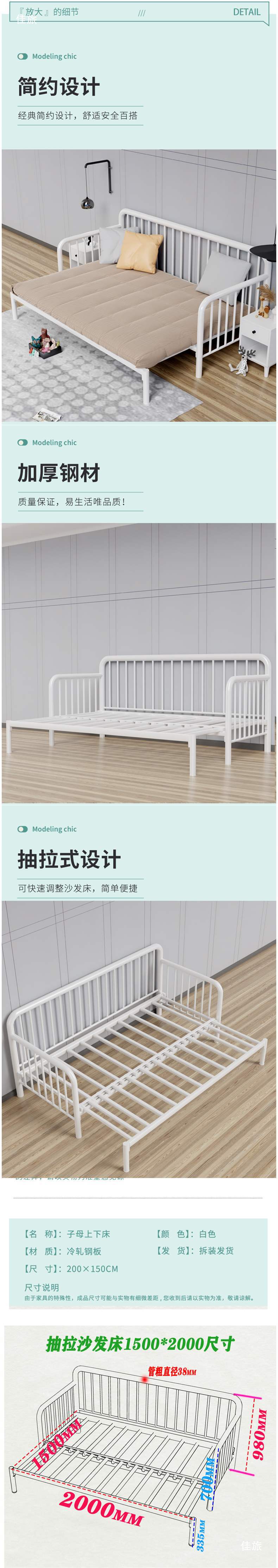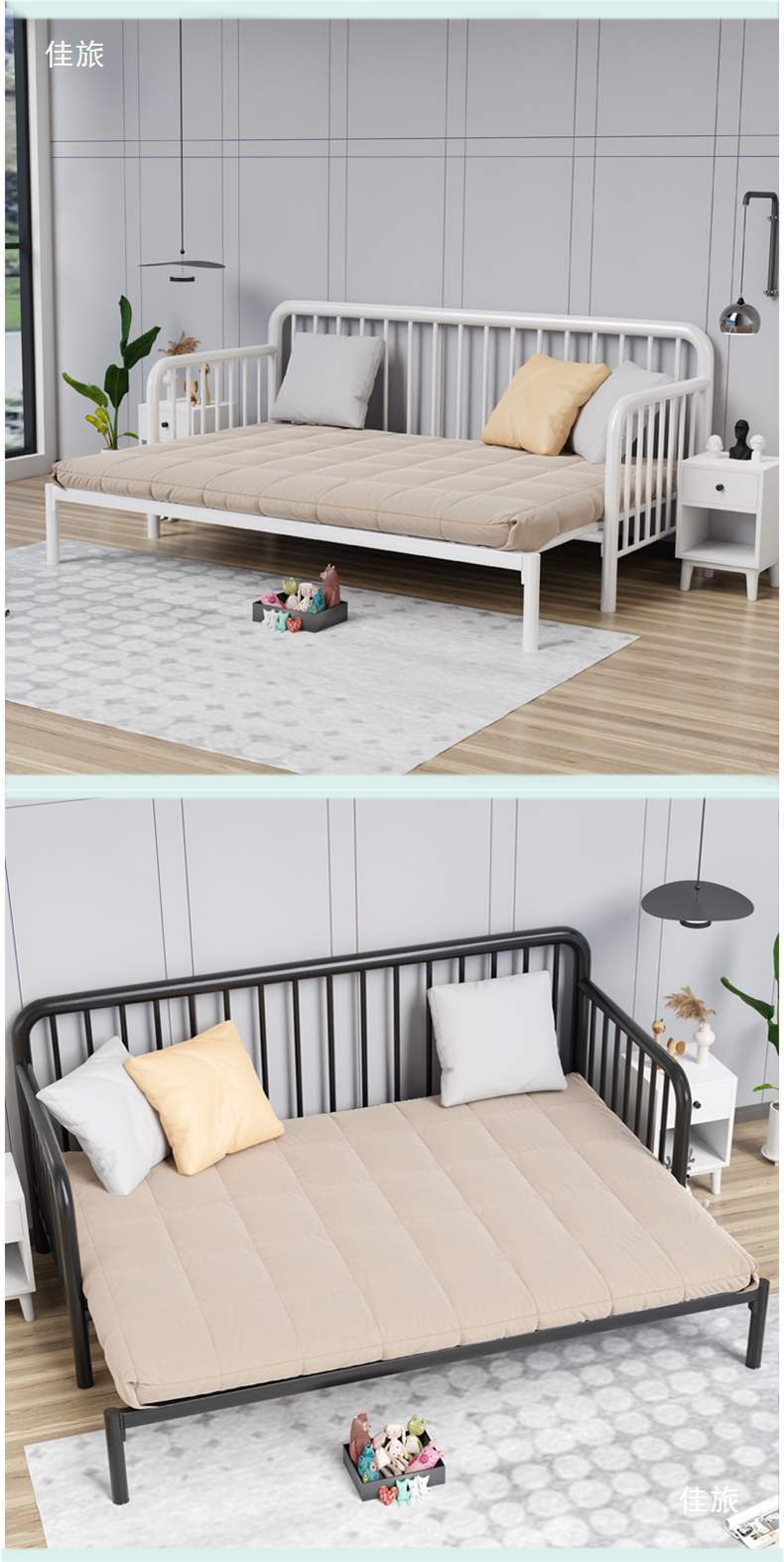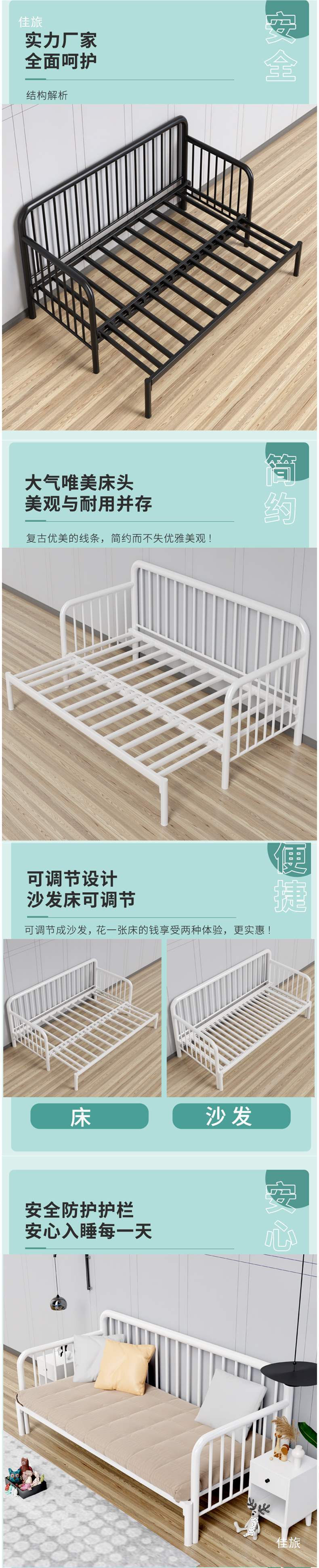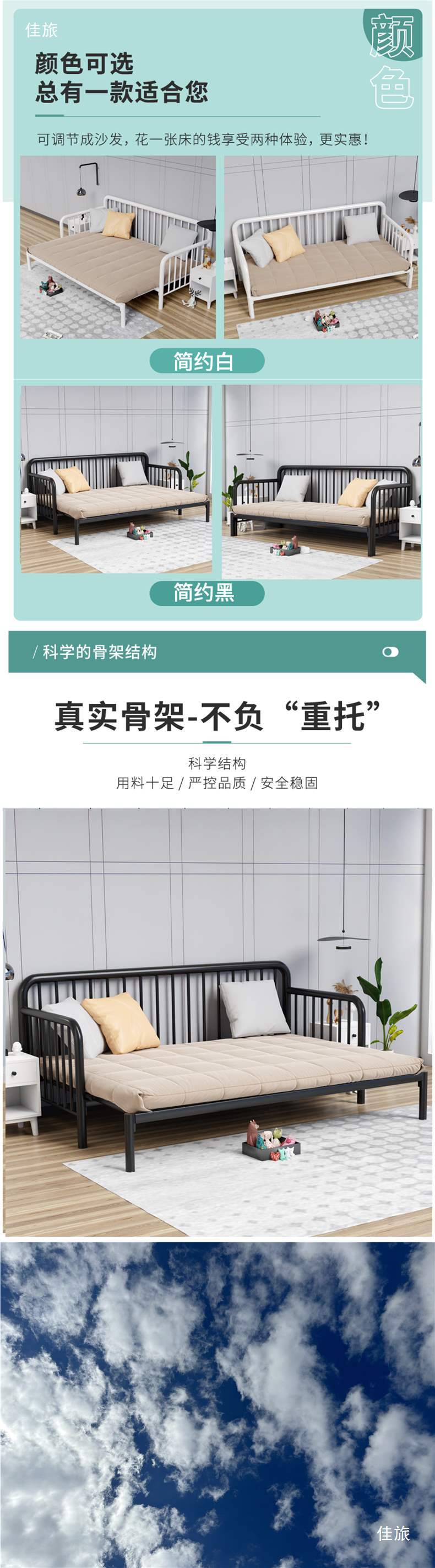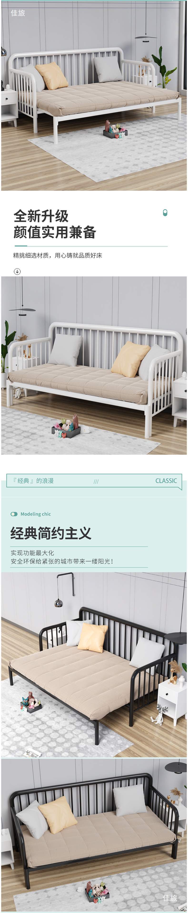 간단한 철제 침대, 접이식 거실 싱글 침대, 접이식 철제 프레임 침대, 다기능 좌식 및 수면 침대, 철제 소파 침대