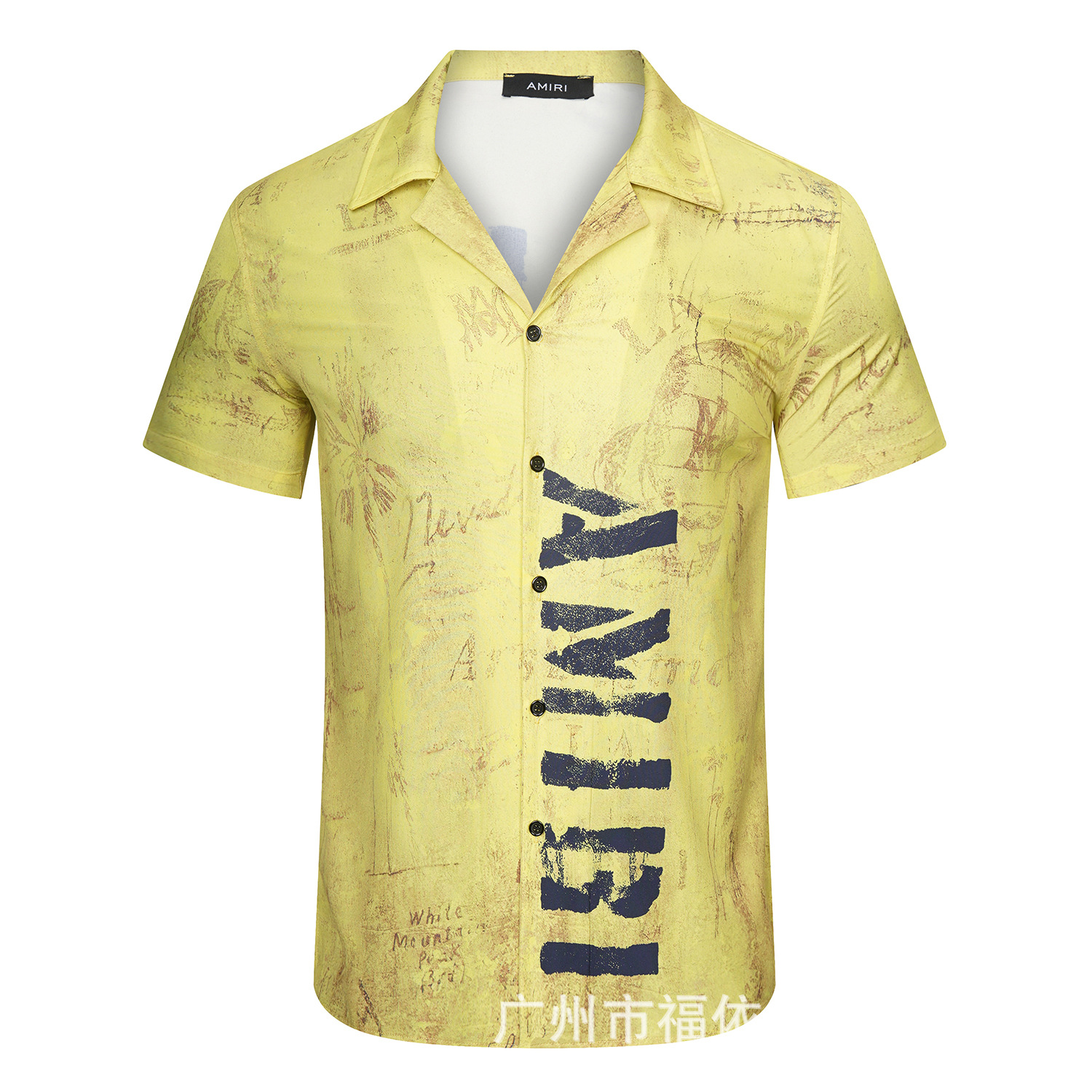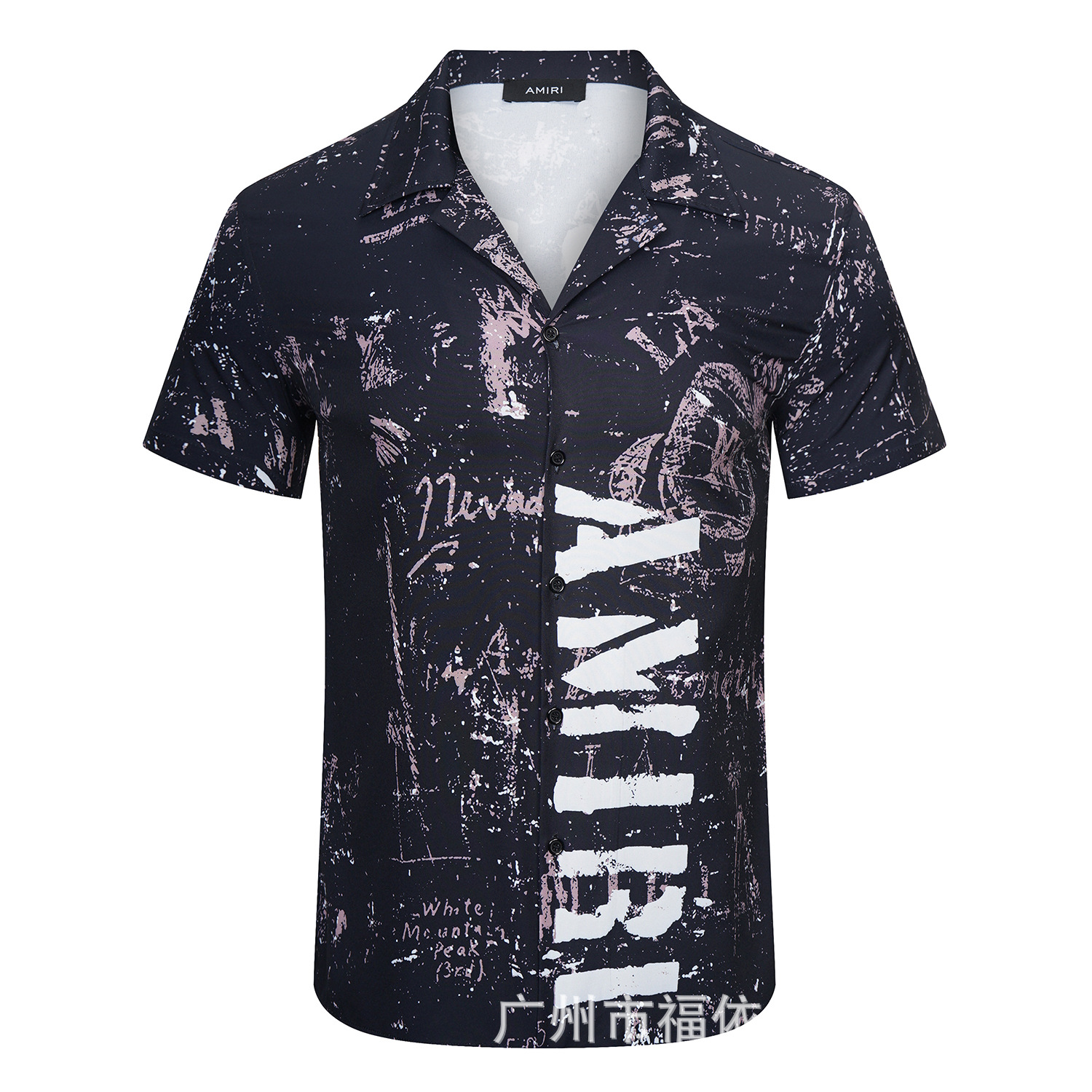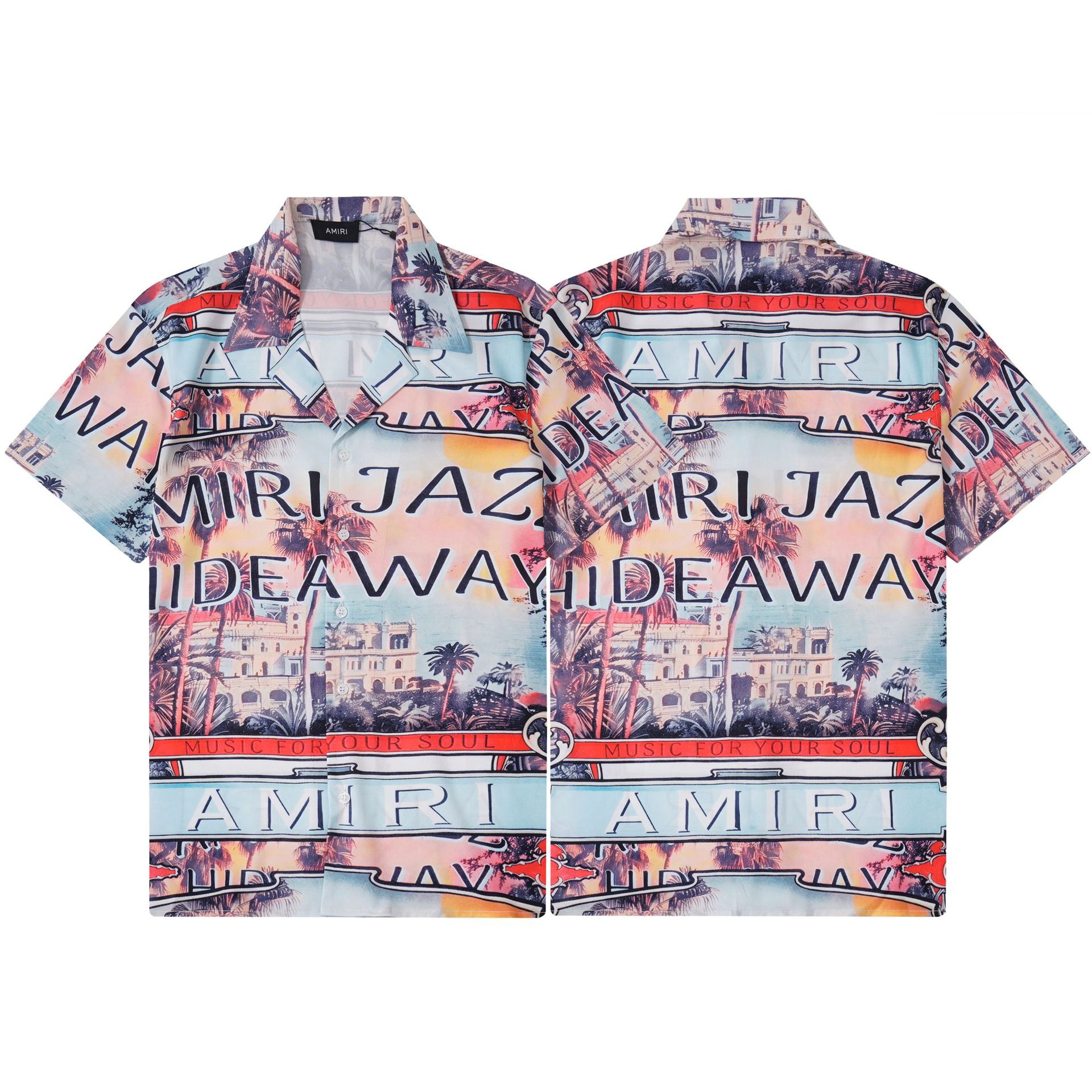 25FW 하이 스트리트 AM 시리즈 플라워 셔츠 남성 하와이안 비치 프린트 셔츠 반바지 얇은 탑 슈트 여름