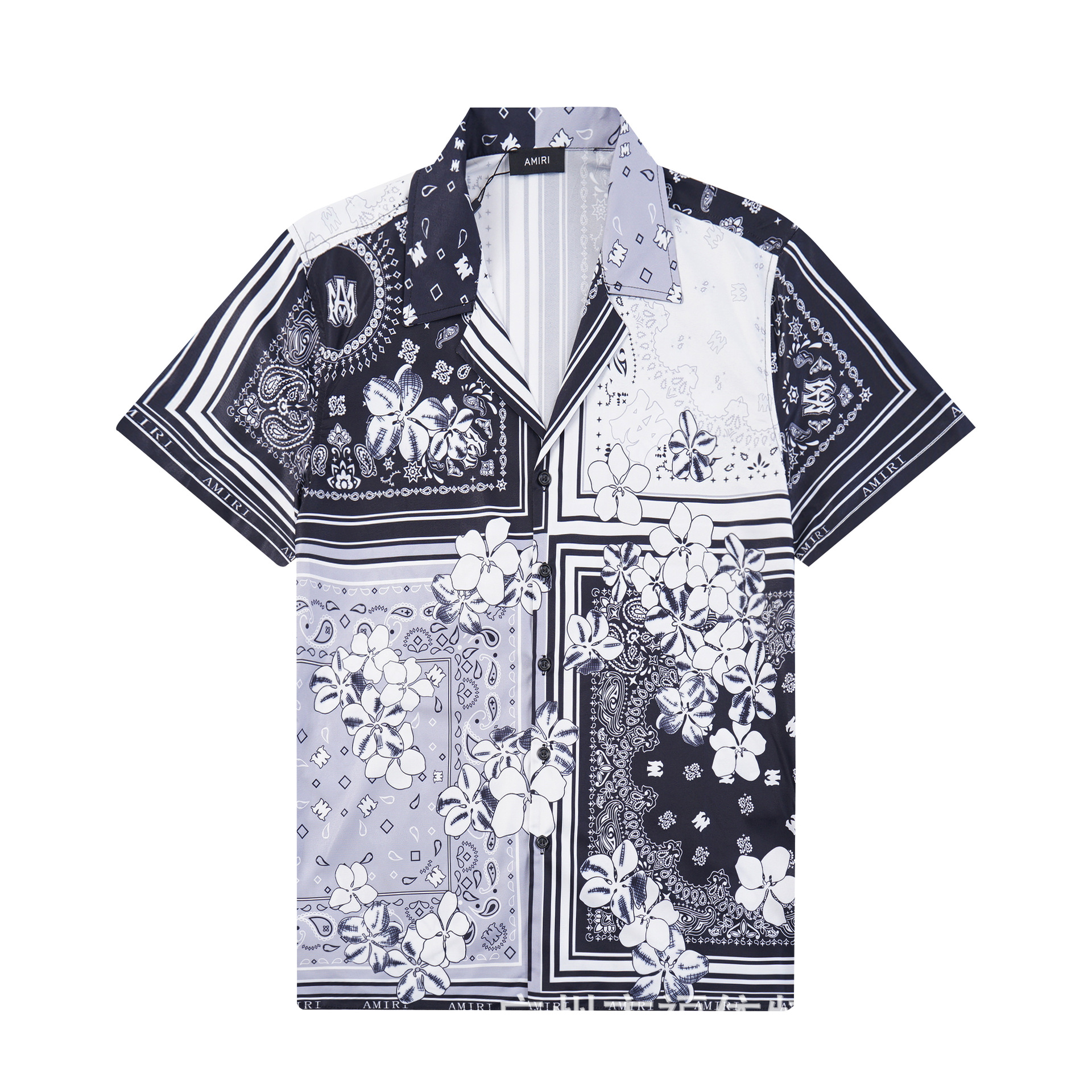 25FW 하이 스트리트 AM 시리즈 플라워 셔츠 남성 하와이안 비치 프린트 셔츠 반바지 얇은 탑 슈트 여름스토어 가기