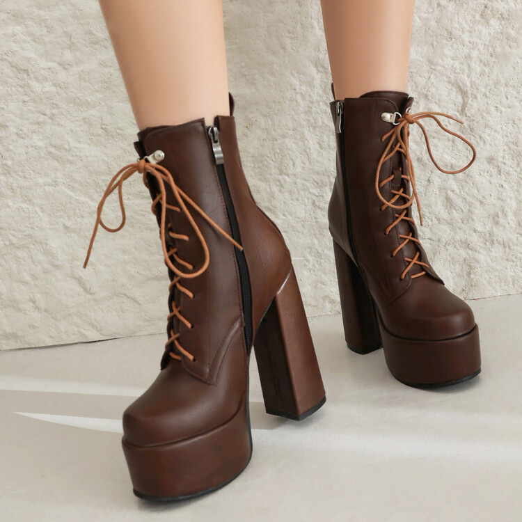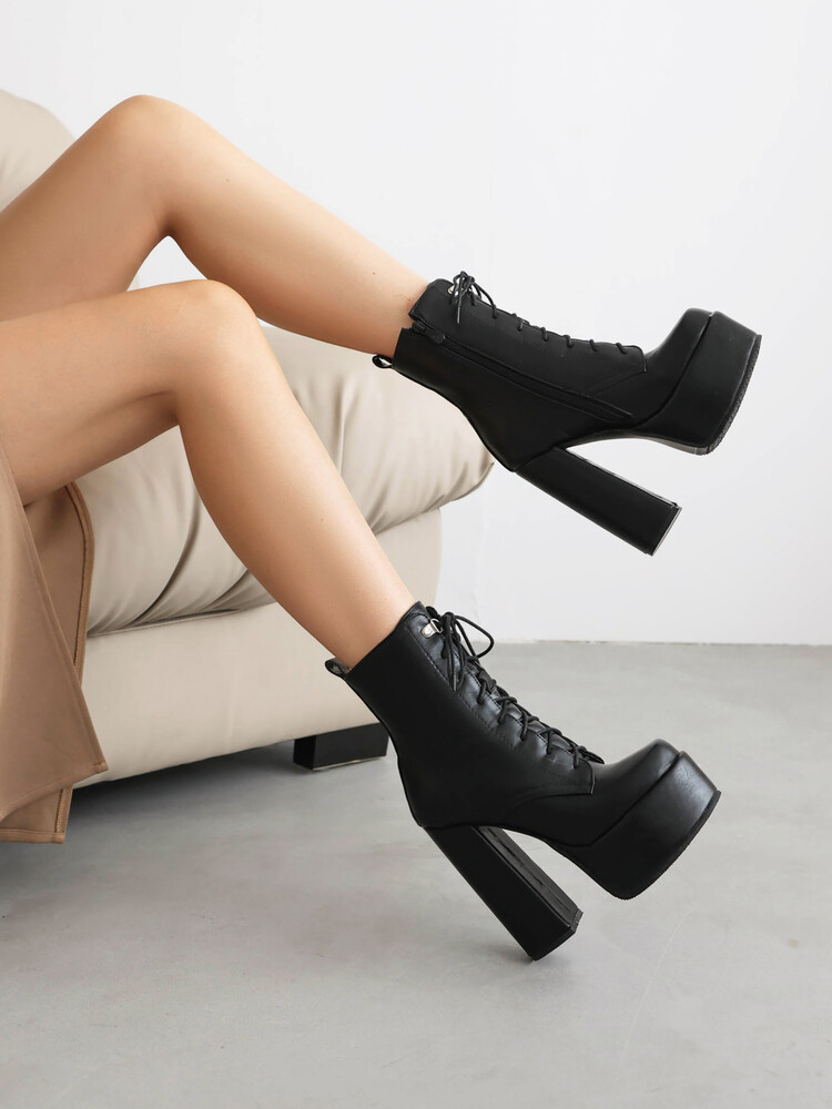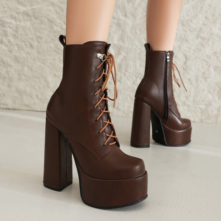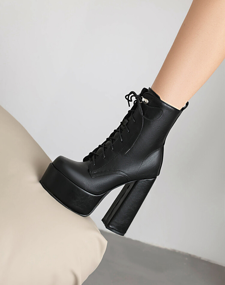 24년 신작 가을 겨울 여성용 레이스업 하이힐 마틴 부츠, 영국식 부츠, 여성용 두꺼운 밑창 작은 두꺼운 굽 숏부츠스토어 가기