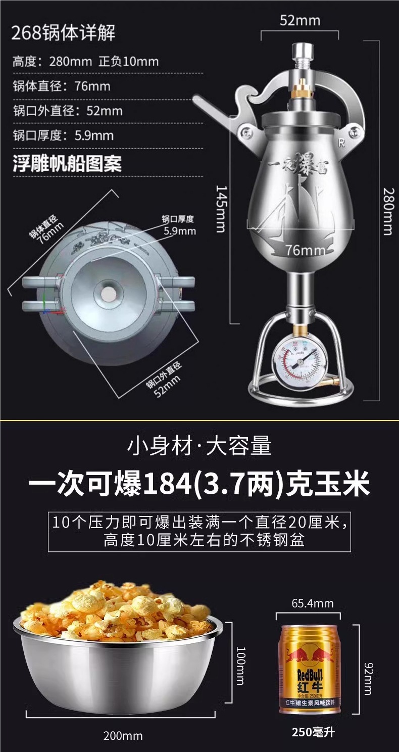 304 스테인레스 스틸 미니 팝콘 기계 곡물 증폭기 팝콘 가정용 구식 수동 곡물 증폭기