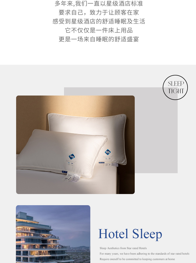 힐튼 클래스 A 5성급 호텔 베개는 경추를 보호하고 무너지거나 변형되지 않으며 순면 베개 코어는 세탁 가능하고 가정용입니다.스토어 가기