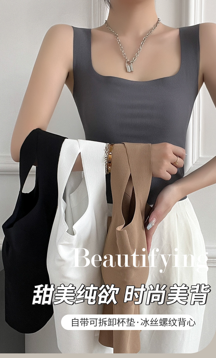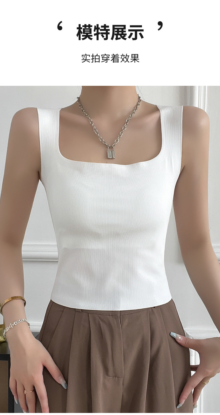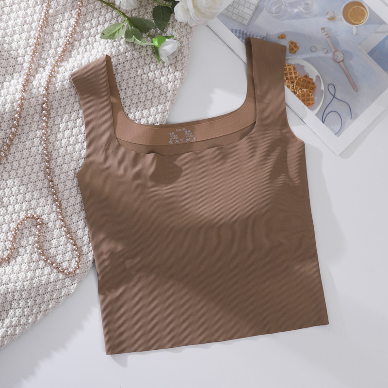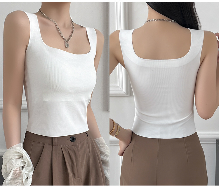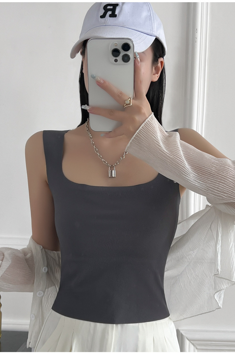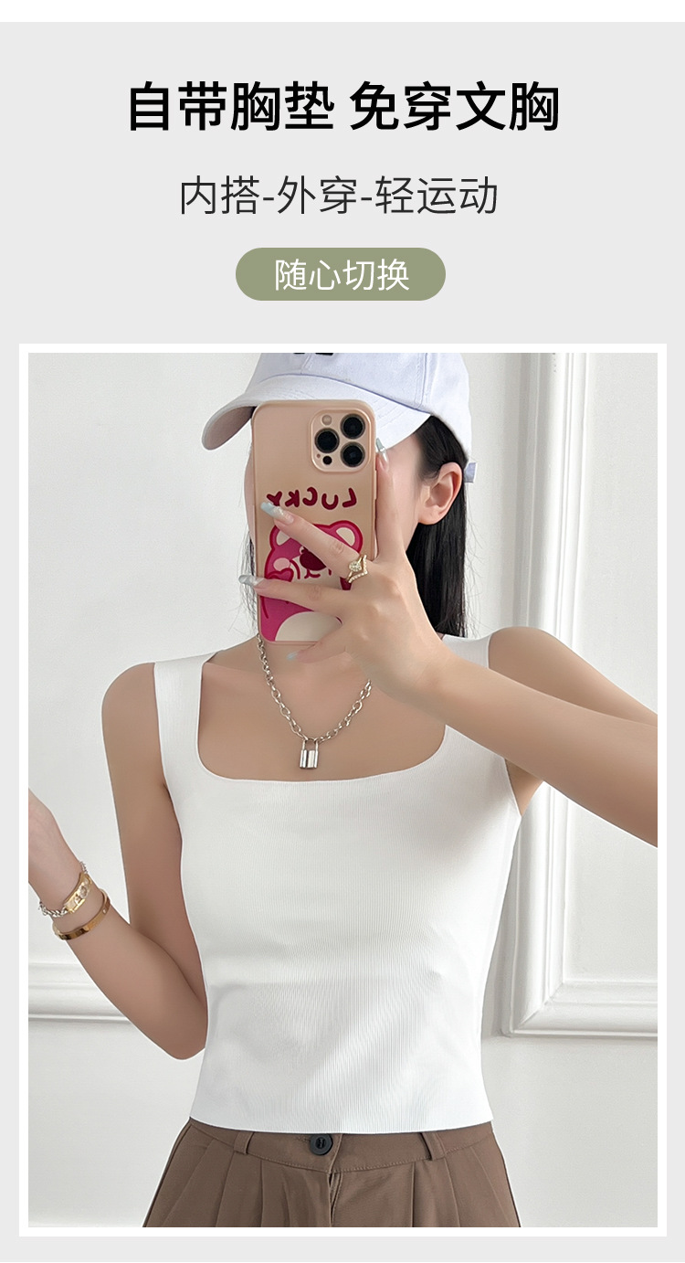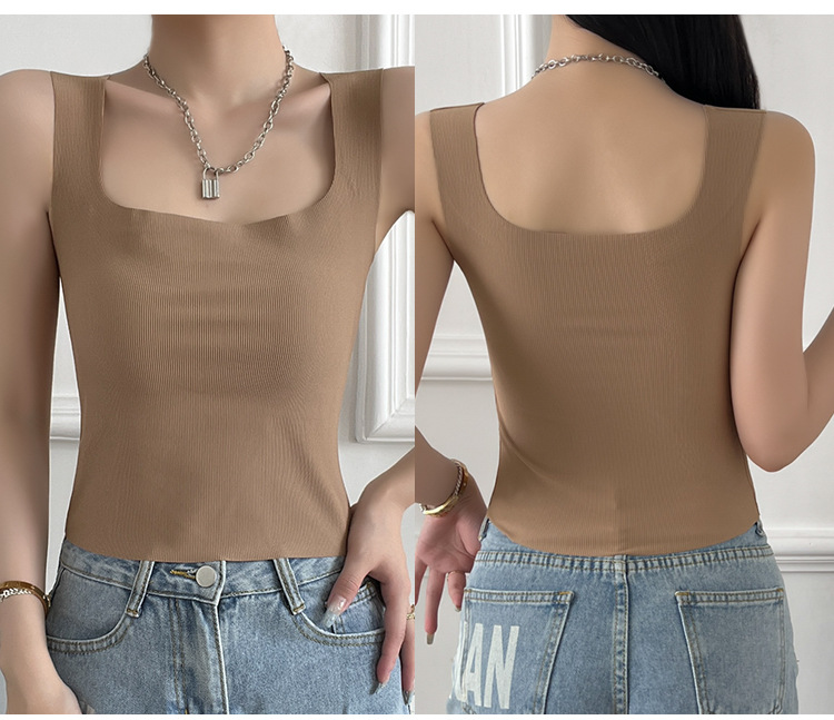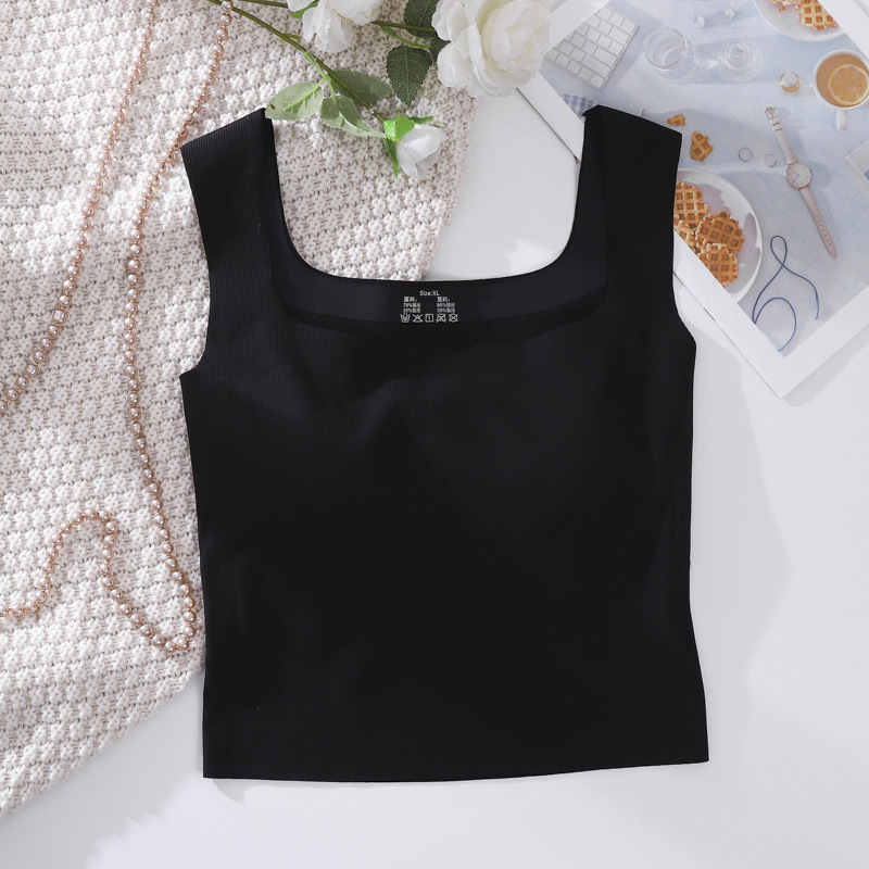 여성용 봄, 여름, 가을 아이스 실크 조끼 슈트, 솔리드 컬러 스퀘어 넥 서스펜더, 가슴 패드가 있는 원피스 탑
