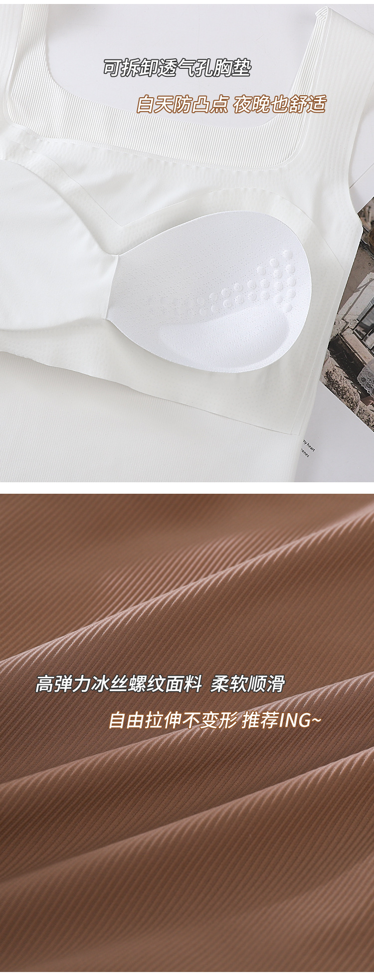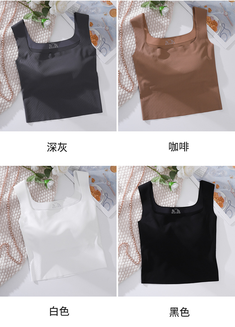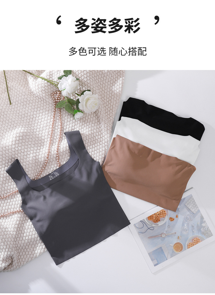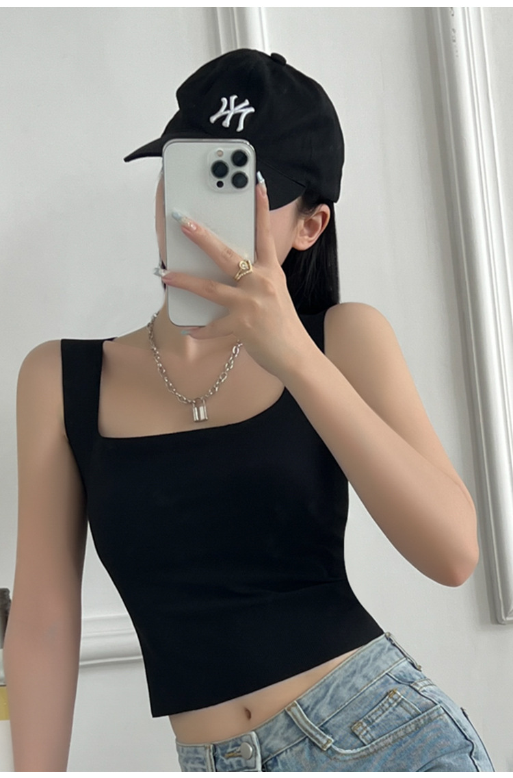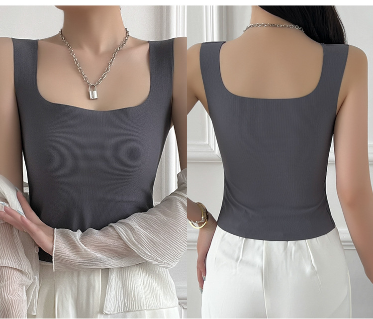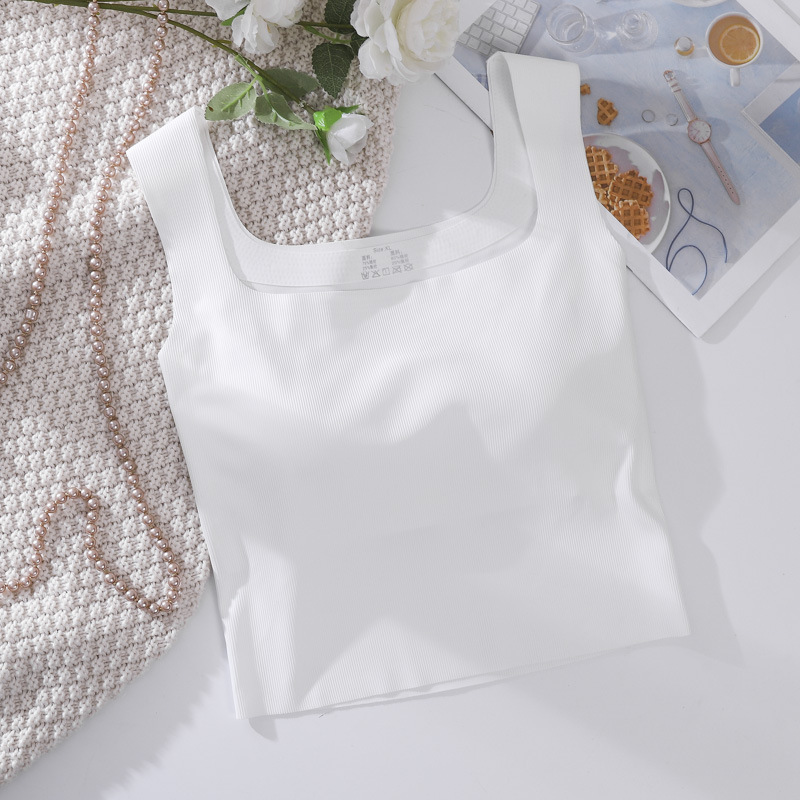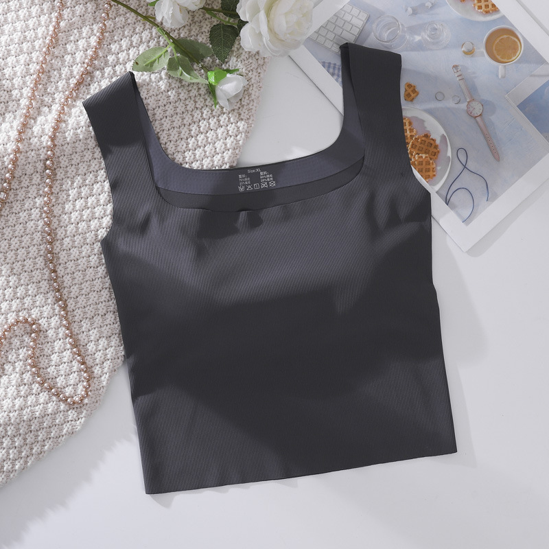 여성용 봄, 여름, 가을 아이스 실크 조끼 슈트, 솔리드 컬러 스퀘어 넥 서스펜더, 가슴 패드가 있는 원피스 탑