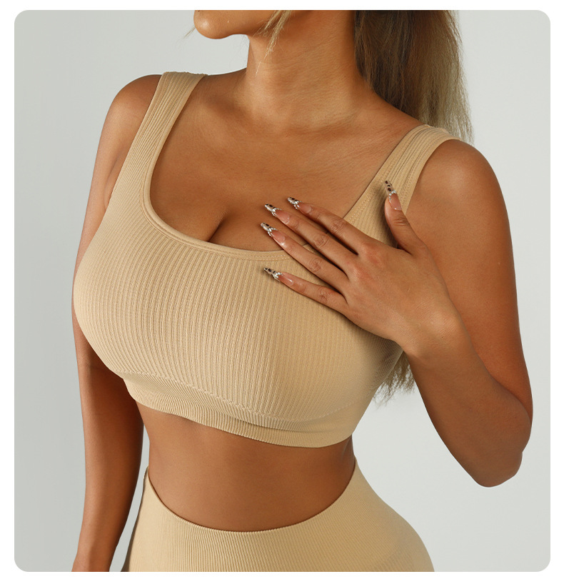 가슴 패드가 있는 여성용 스레드 요가 조끼, 섹시한 스포츠, 이음매 없는 속건성 슬림 브라, 트레이닝 스포츠, 아름다운 등