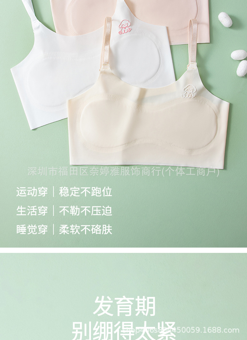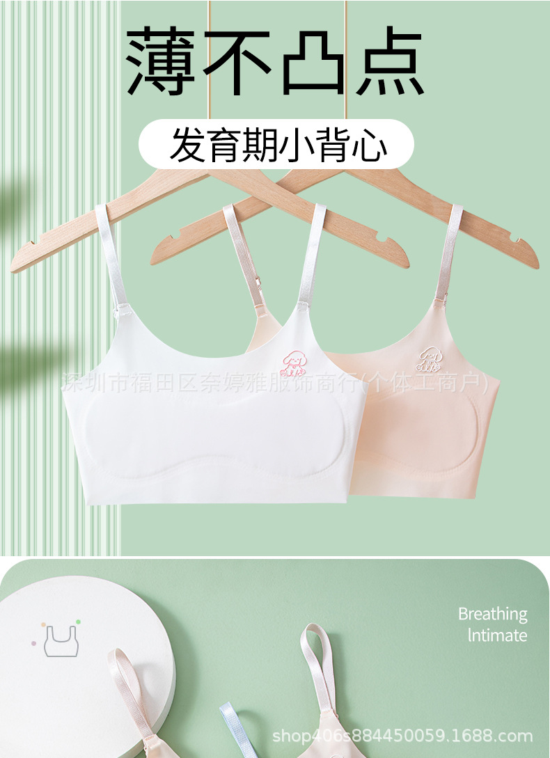 여아 속옷, 청소년 발달기, 7-14세 여아, 초중등학생을 위한 시원하고 통기성이 뛰어난 작은 조끼, 흔적 없는 얇은 튜브탑
