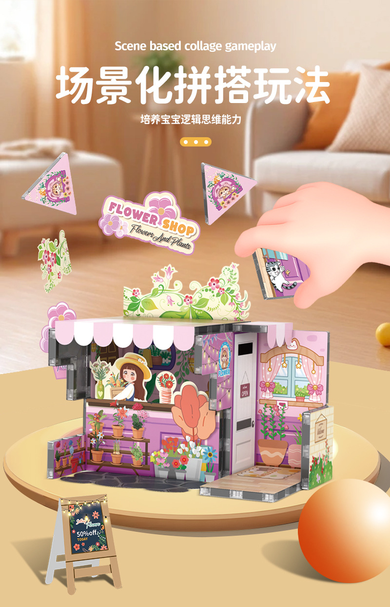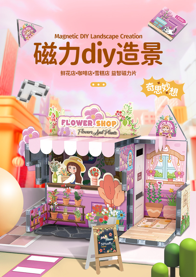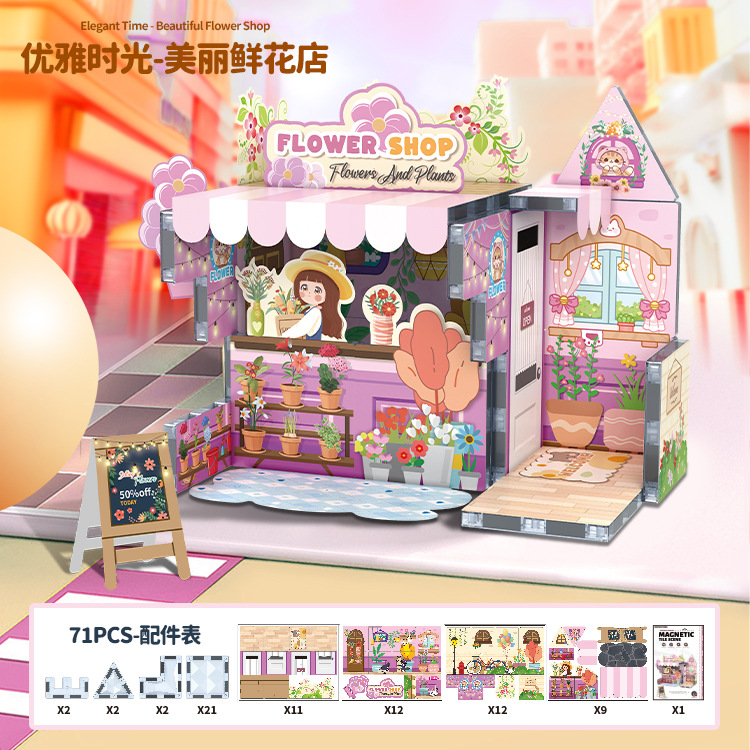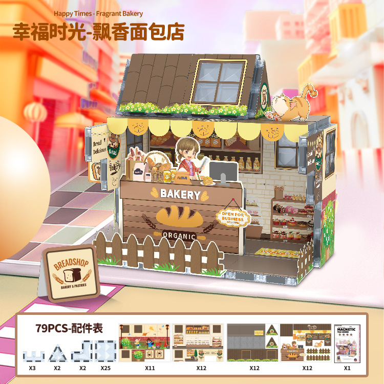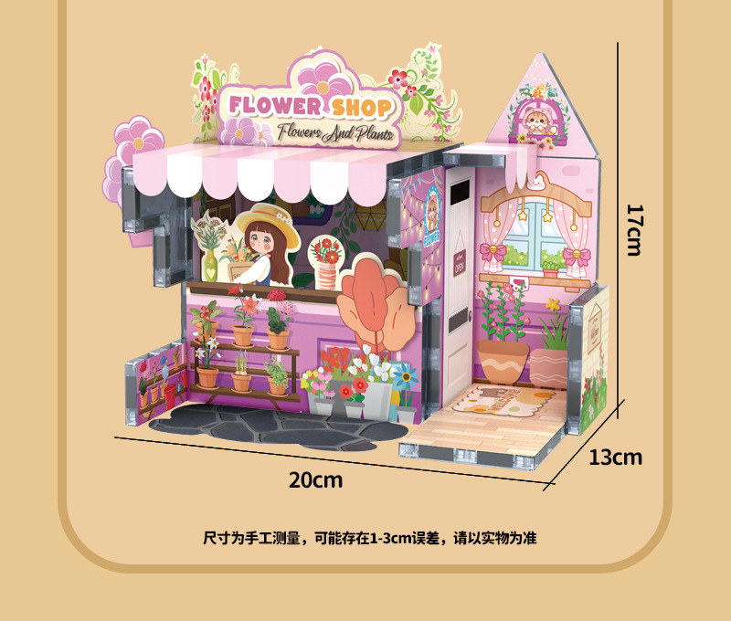 국경 간 자기 시트 빌딩 블록 미니 미니어처 인형 집 장면 모델 장식품 수제 diy 어린이 장난감 캐빈스토어 가기