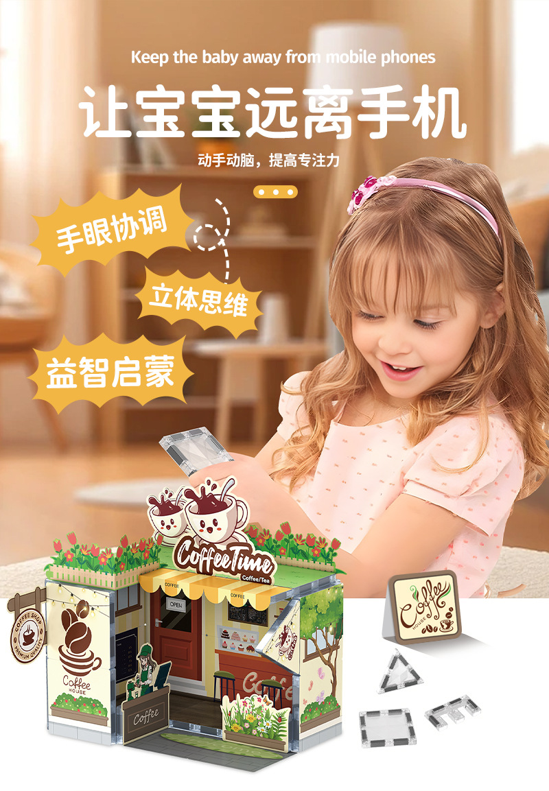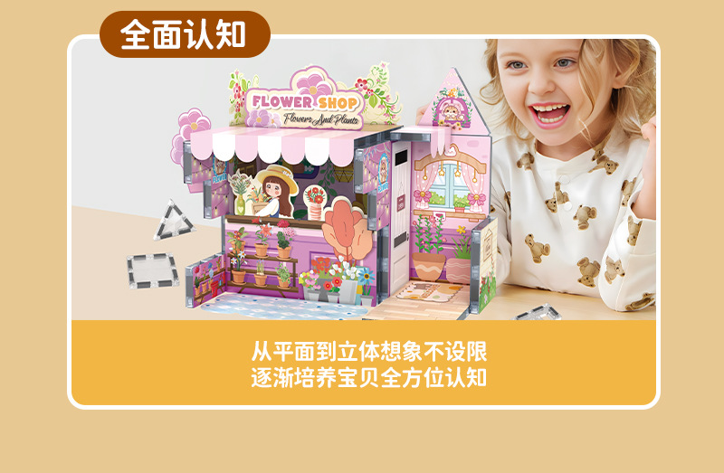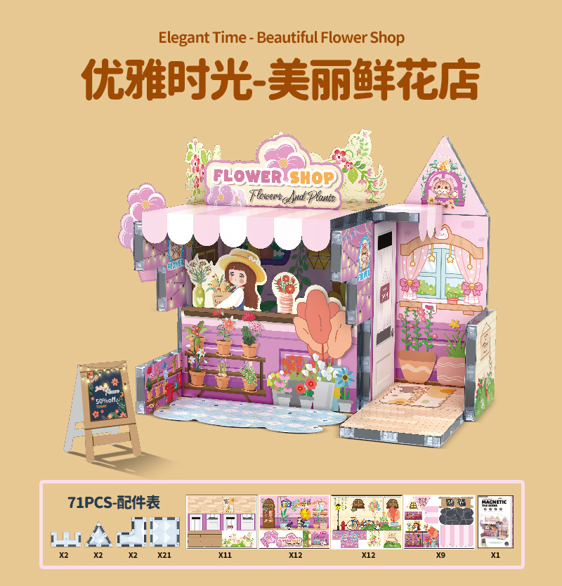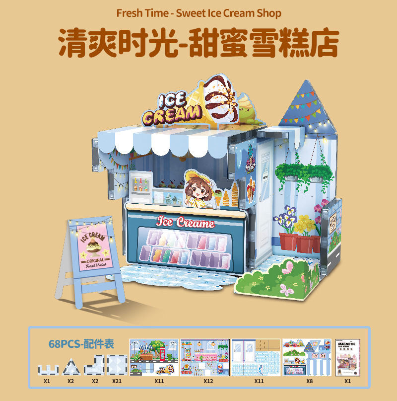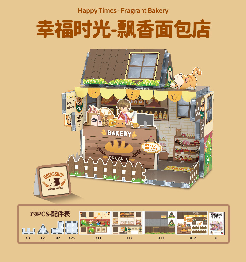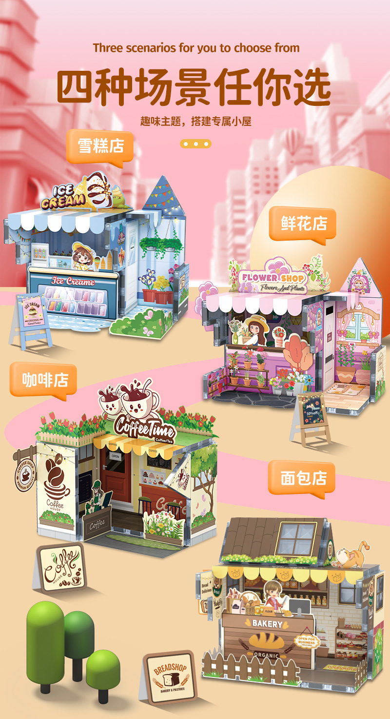 국경 간 자기 시트 빌딩 블록 미니 미니어처 인형 집 장면 모델 장식품 수제 diy 어린이 장난감 캐빈스토어 가기