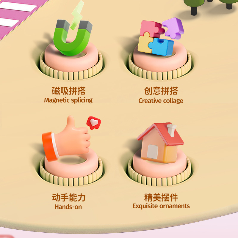 국경 간 자기 시트 빌딩 블록 미니 미니어처 인형 집 장면 모델 장식품 수제 diy 어린이 장난감 캐빈