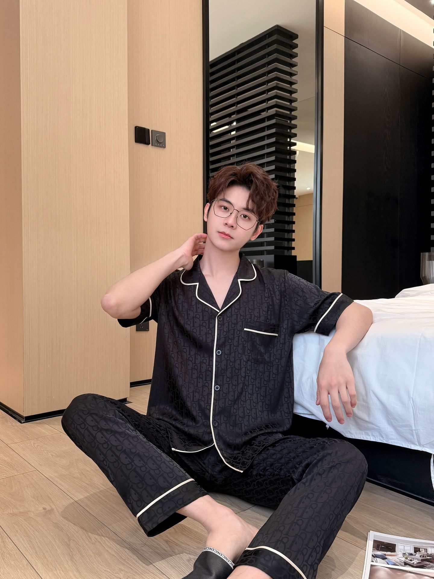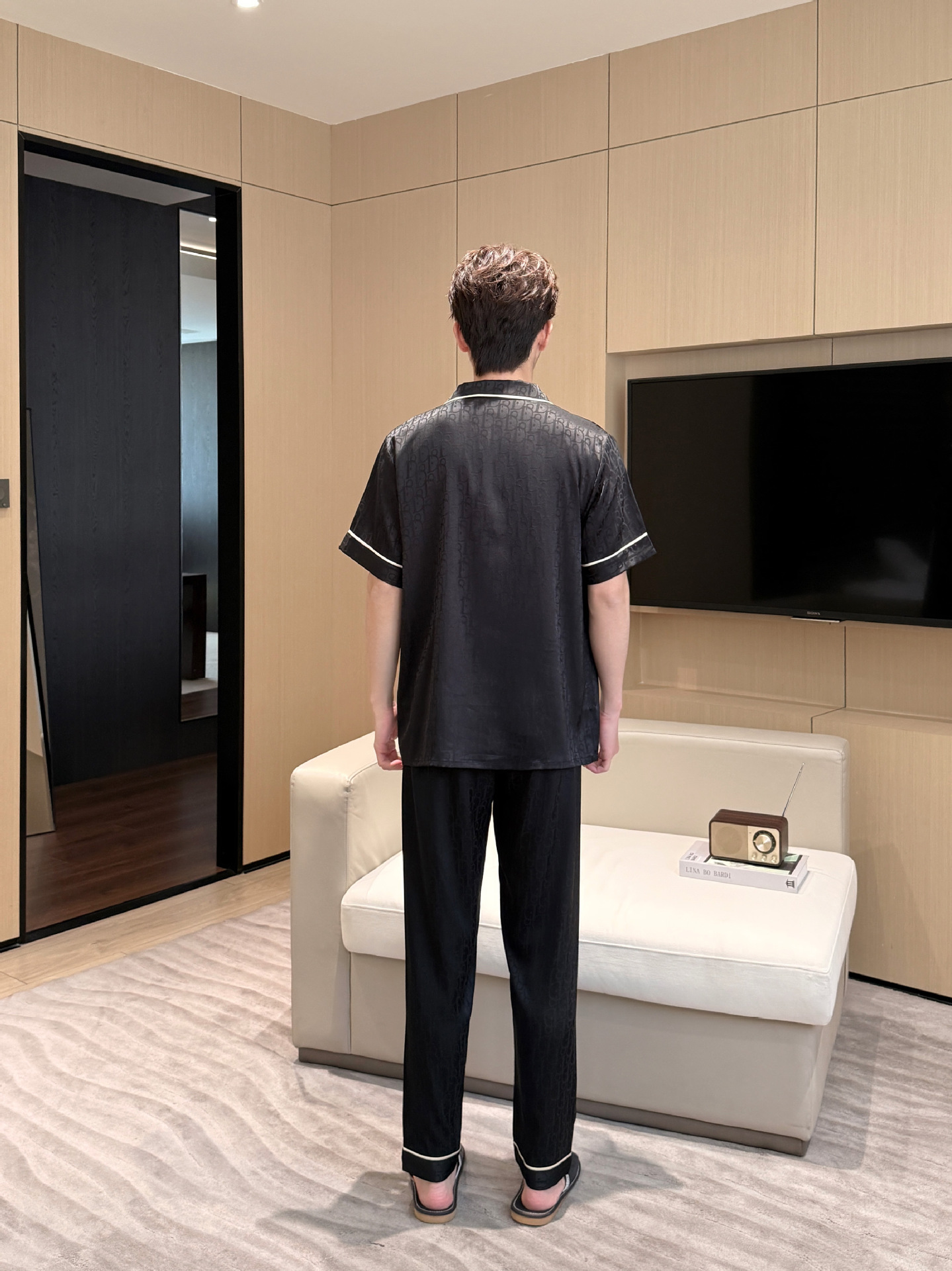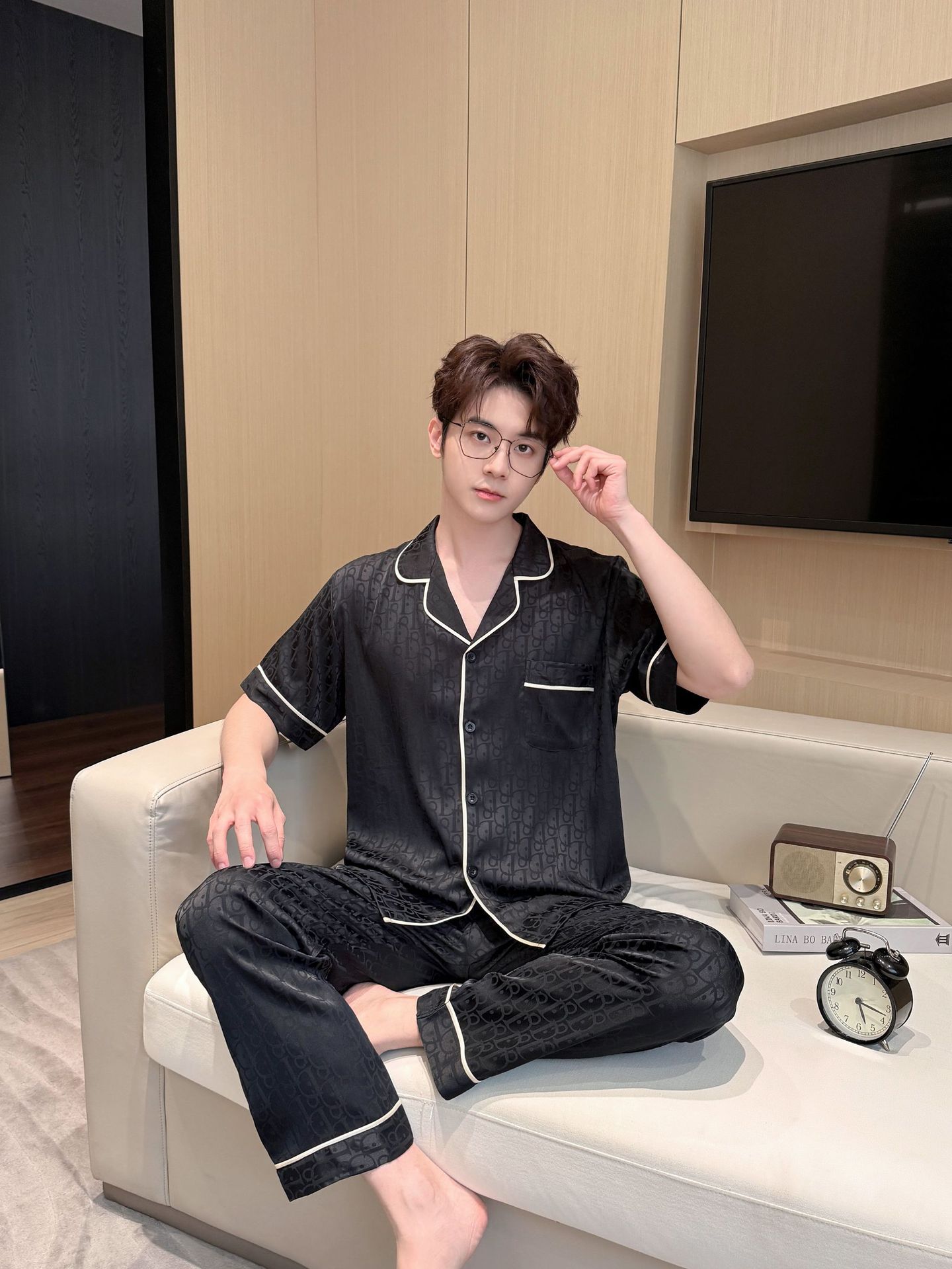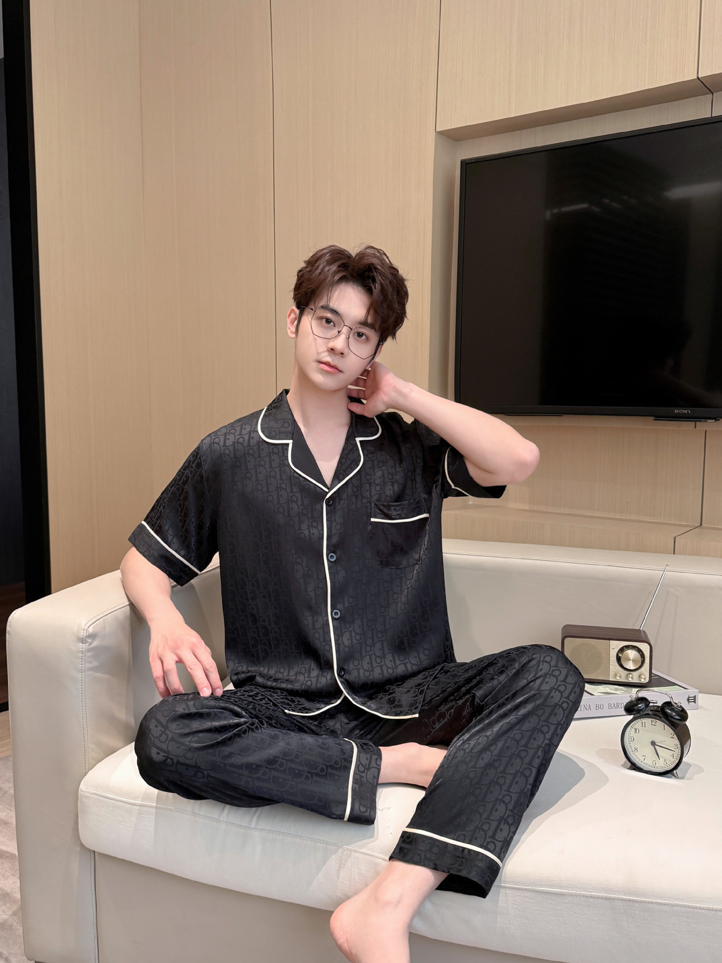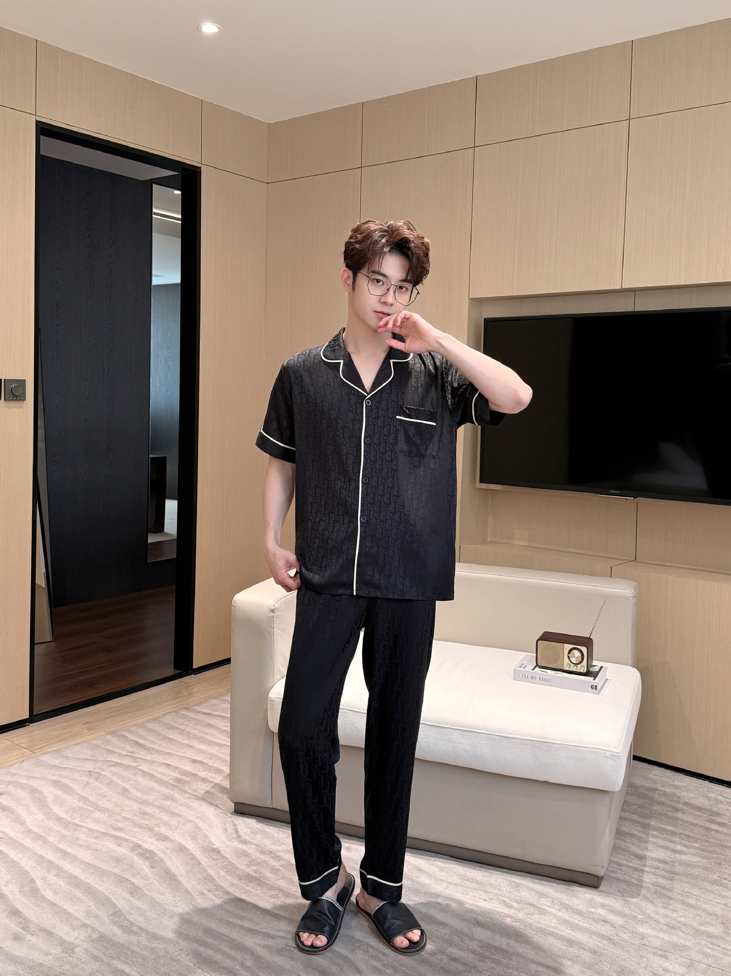 잠옷 남성 봄 반팔 바지 얼음 실크 얇은 자카드 D 문자 투피스 홈웨어 세트 N267