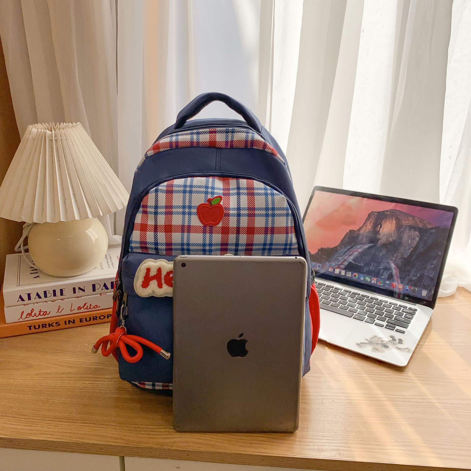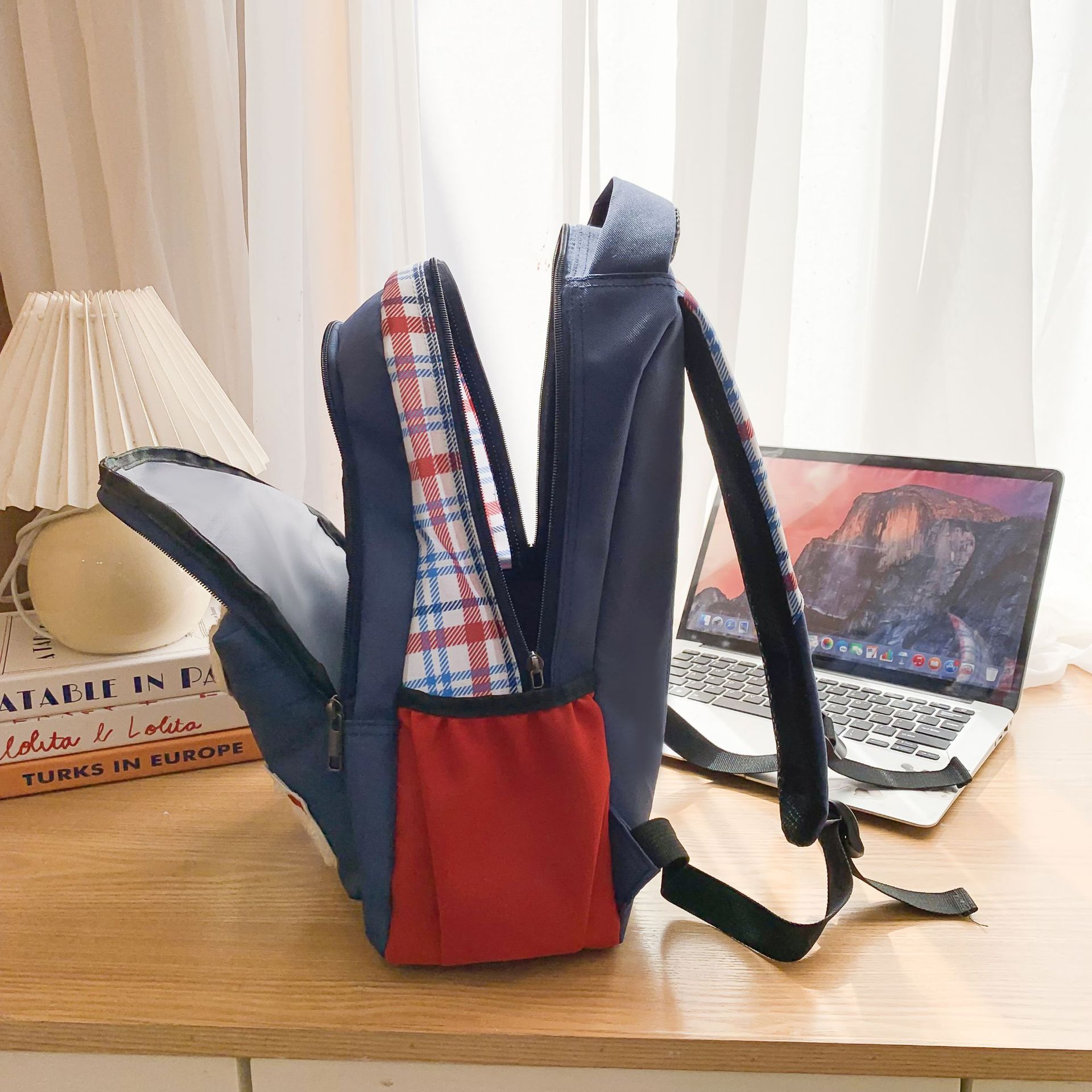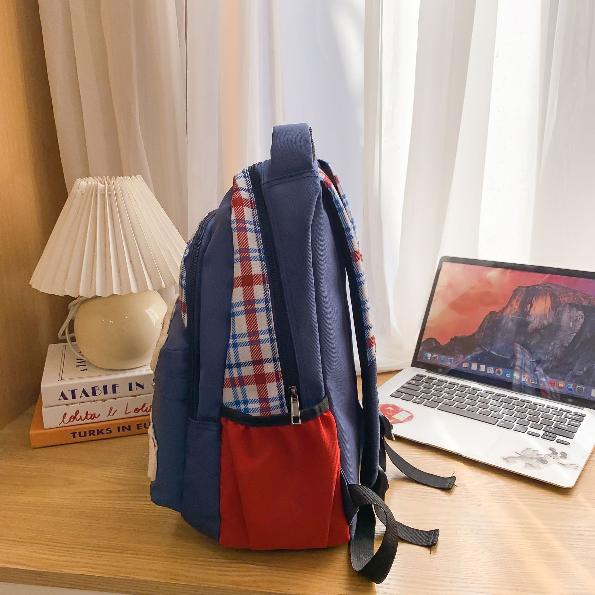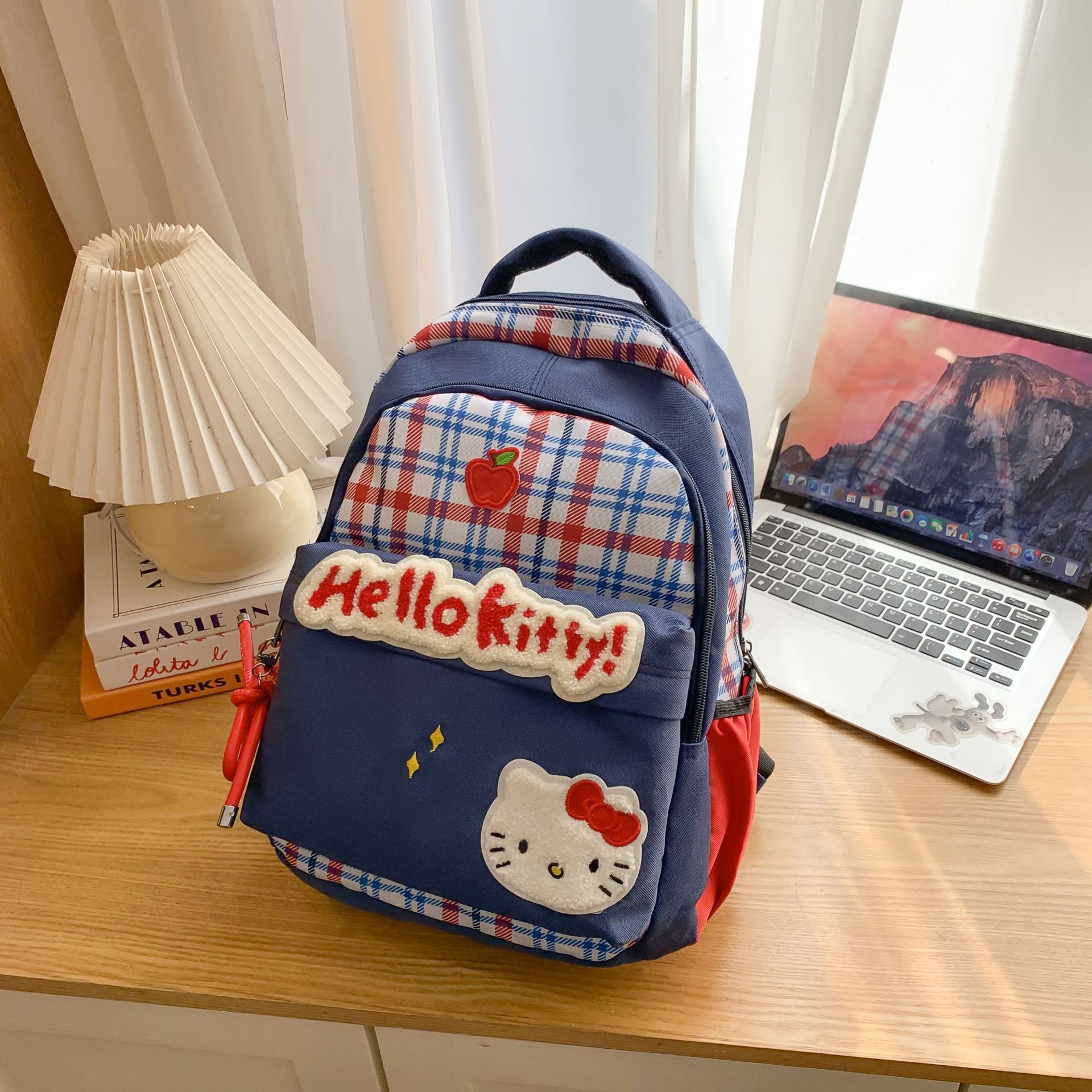 배낭 새로운 복고풍 격자 무늬 여대생 틈새 귀여운 만화 새끼 고양이 대용량 경량 학교 가방스토어 가기