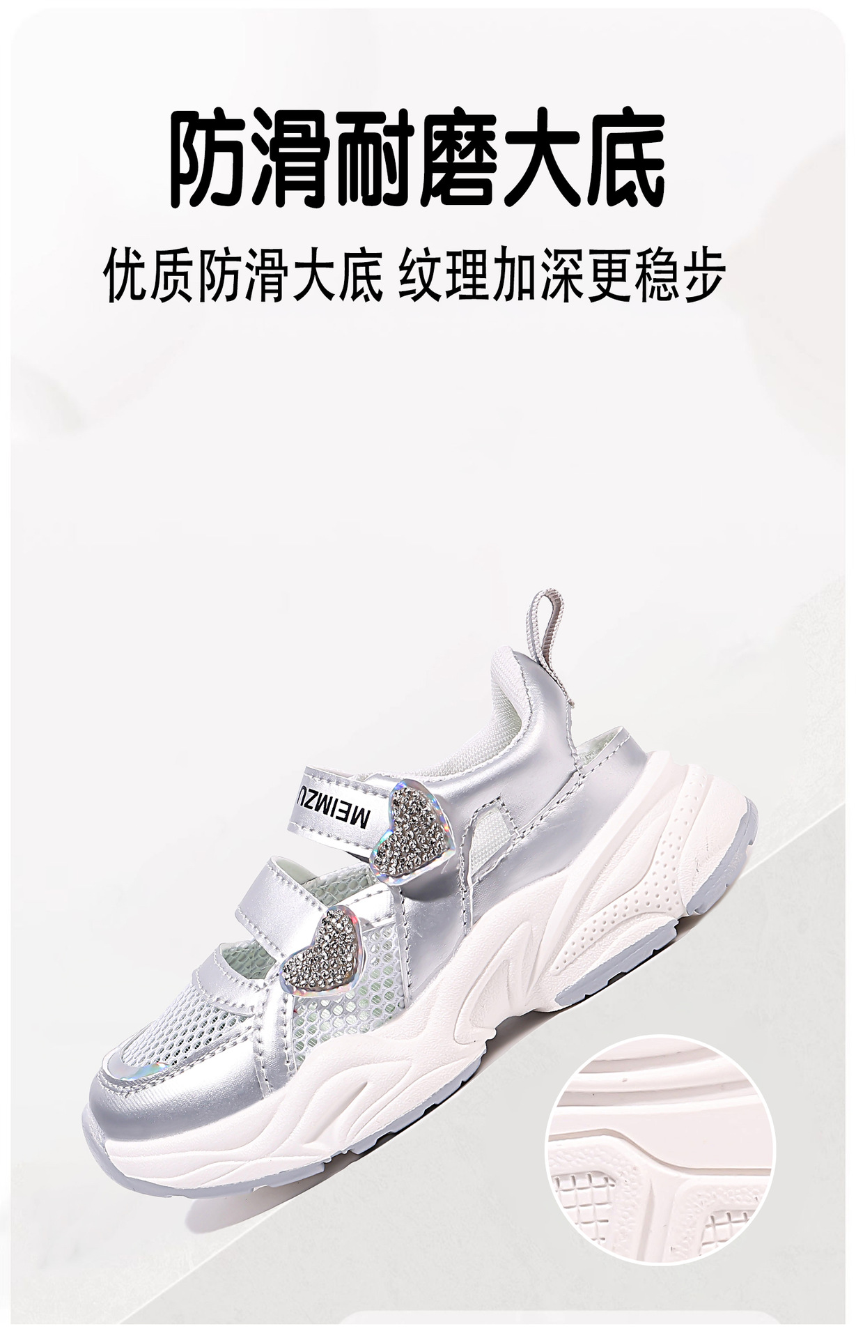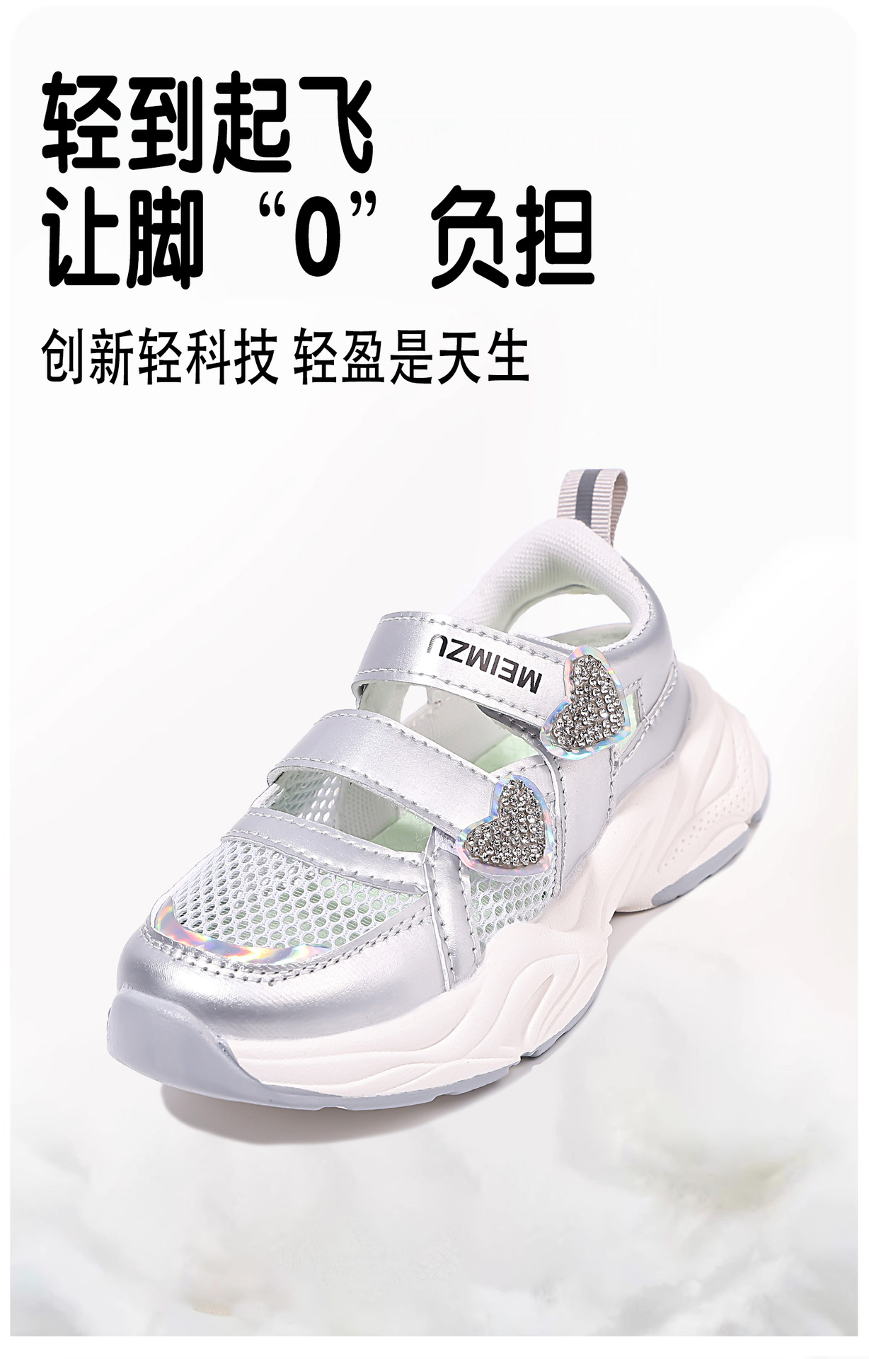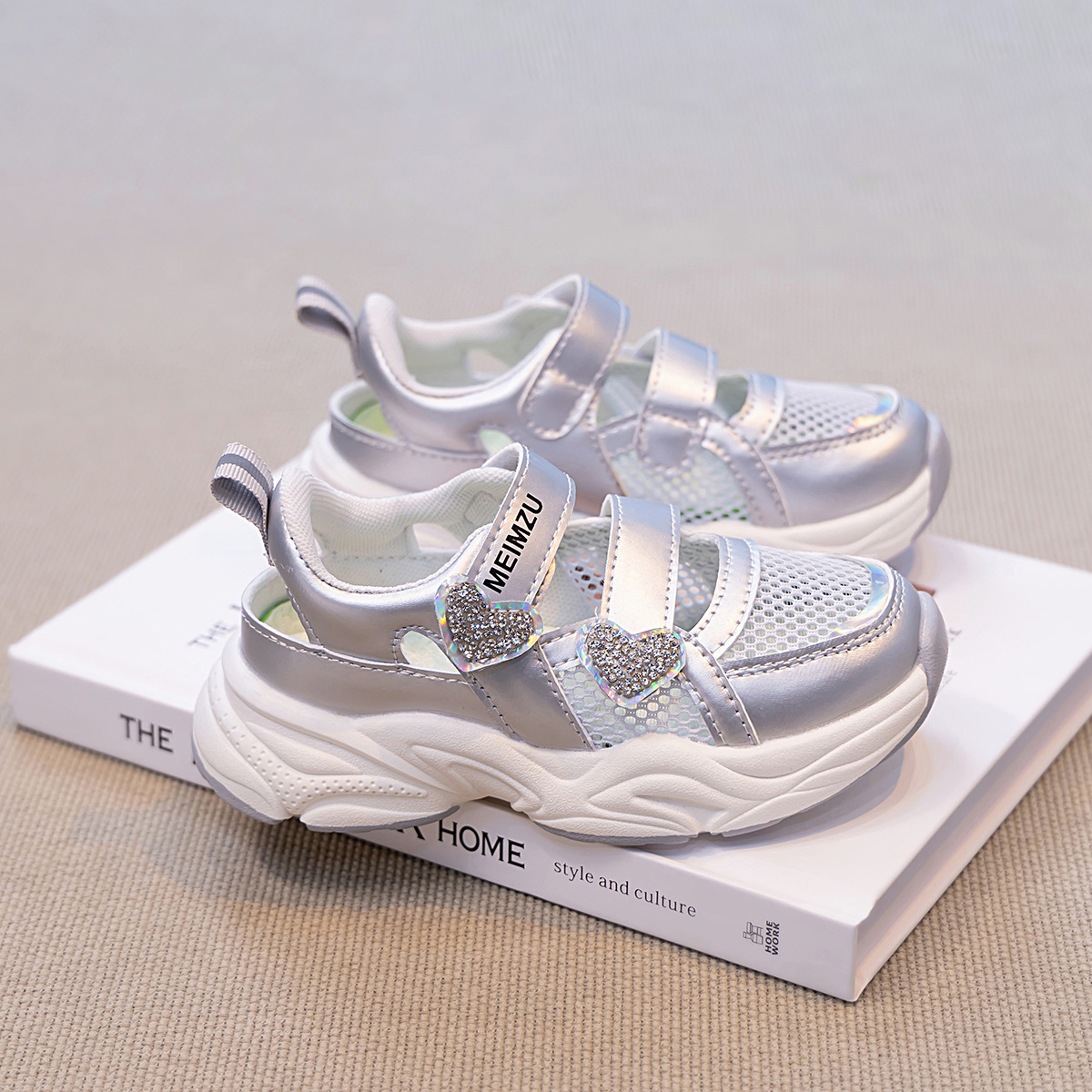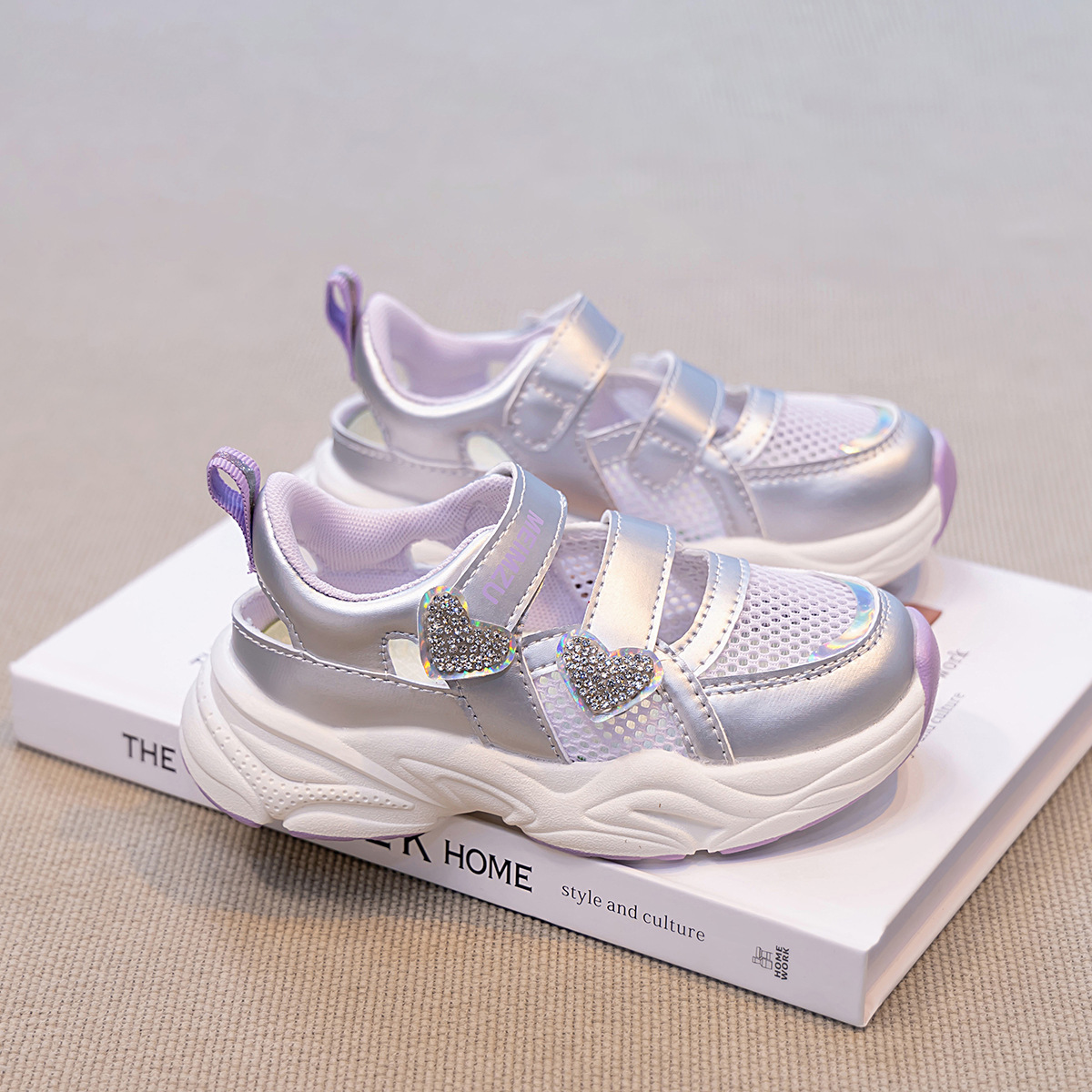 여자 중공 스포츠 샌들 2025 여름 새로운 패션 어린이 공주 신발 여자 단일 메쉬 신발 통기성 샌들스토어 가기
