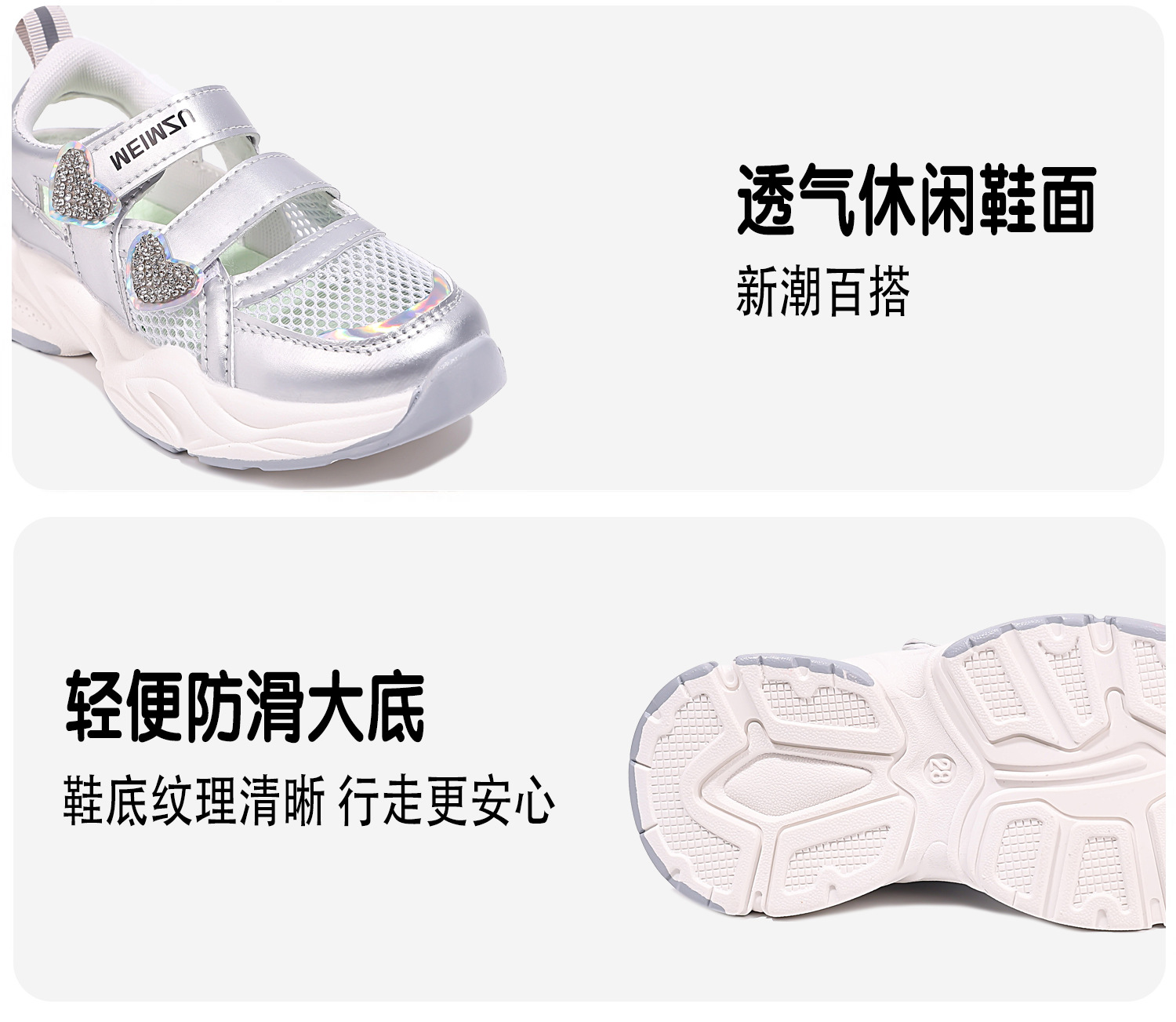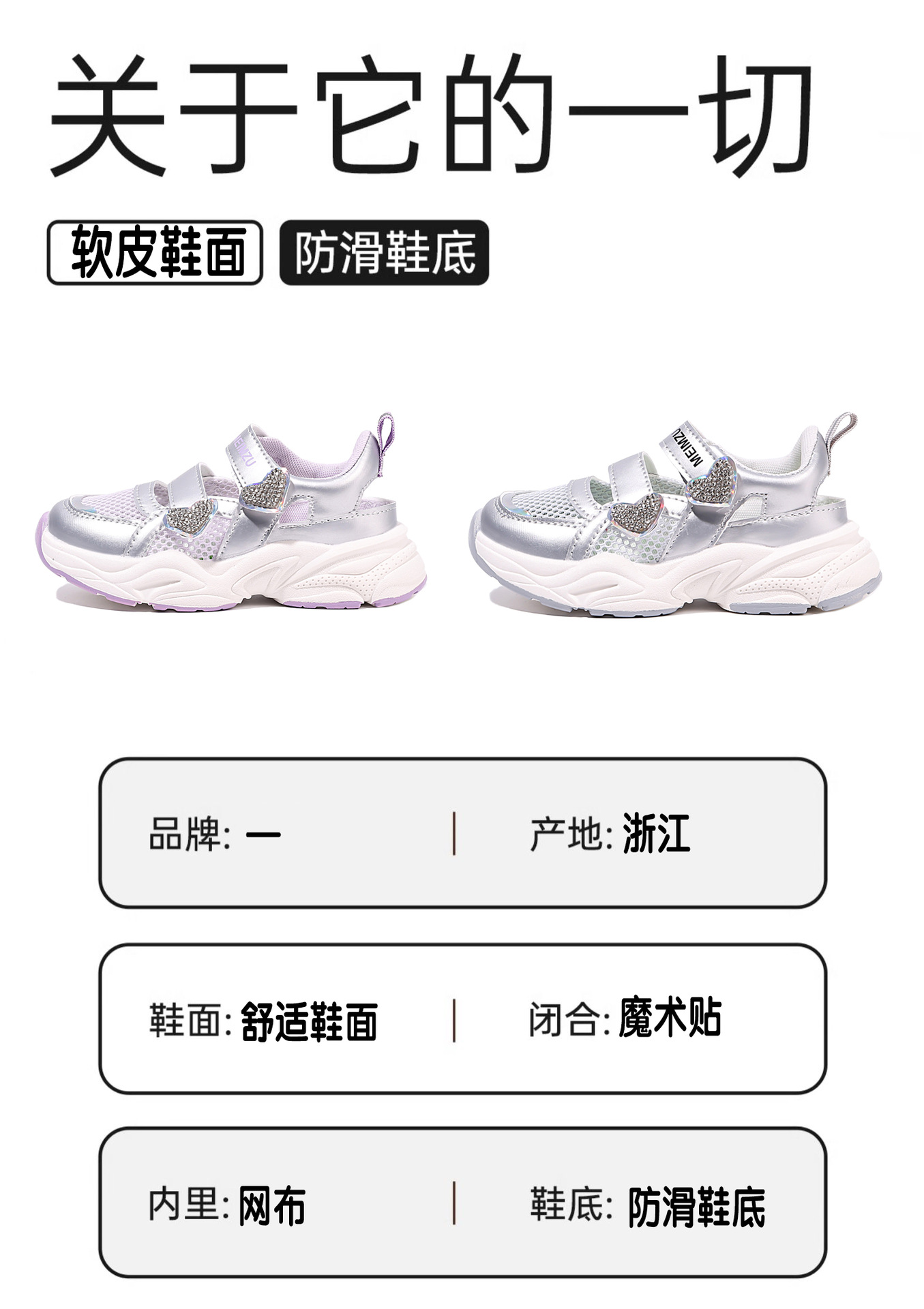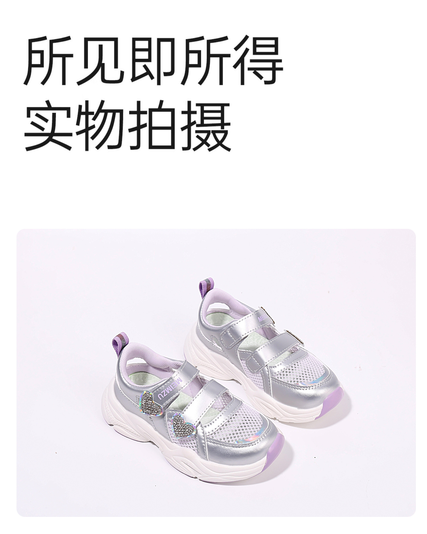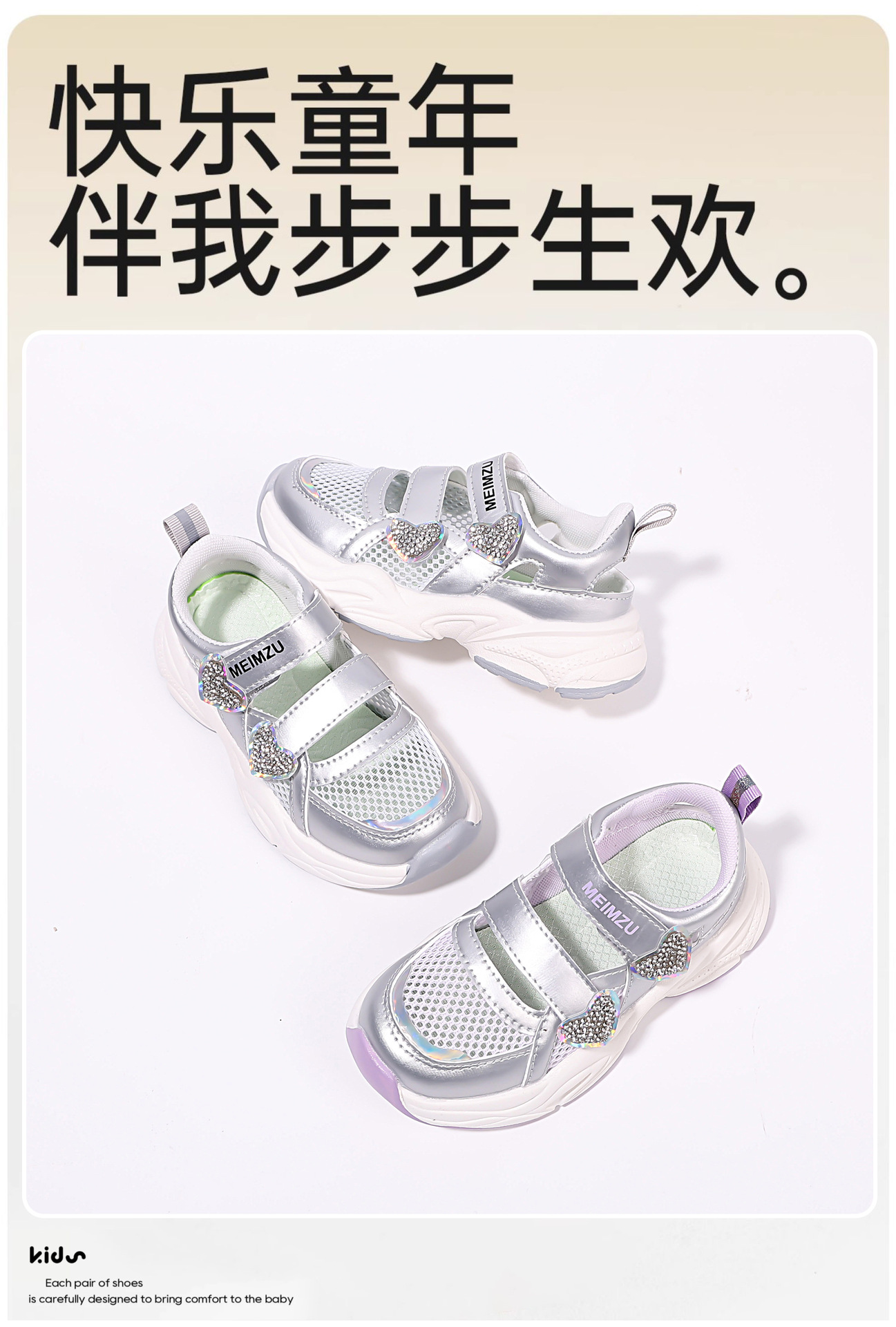 여자 중공 스포츠 샌들 2025 여름 새로운 패션 어린이 공주 신발 여자 단일 메쉬 신발 통기성 샌들스토어 가기