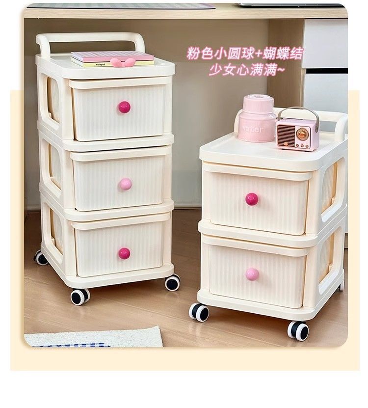 • 핑크 DIY 크림 스타일 트롤리 3겹 크림 화이트 서랍