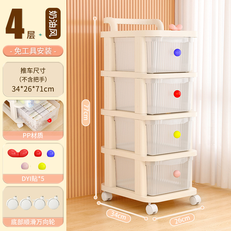 • 다채로운 DIY 크림 스타일 트롤리 4겹 투명 서랍