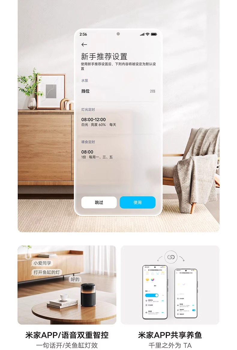 • 「표준 구성」Mijia 데스크탑 수조(Mijia 앱에 연결됨)