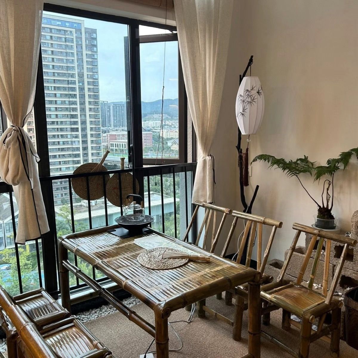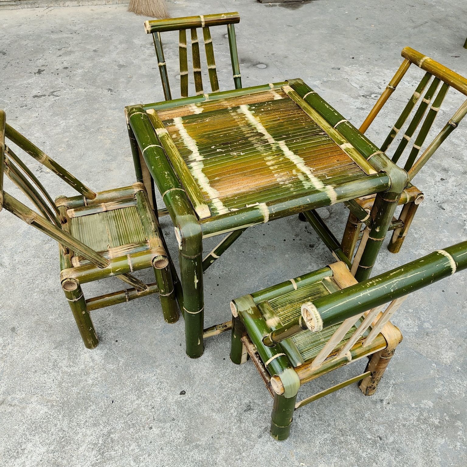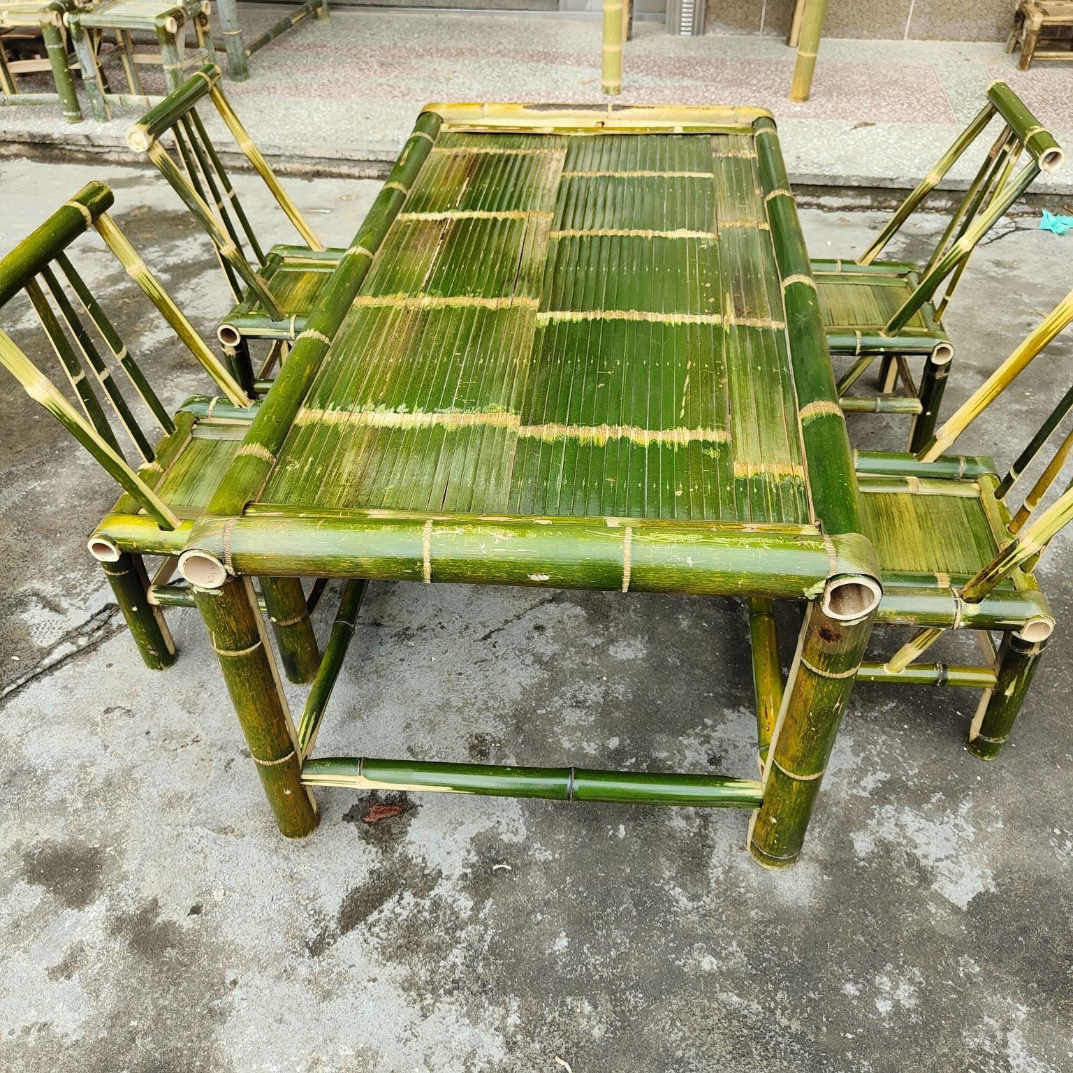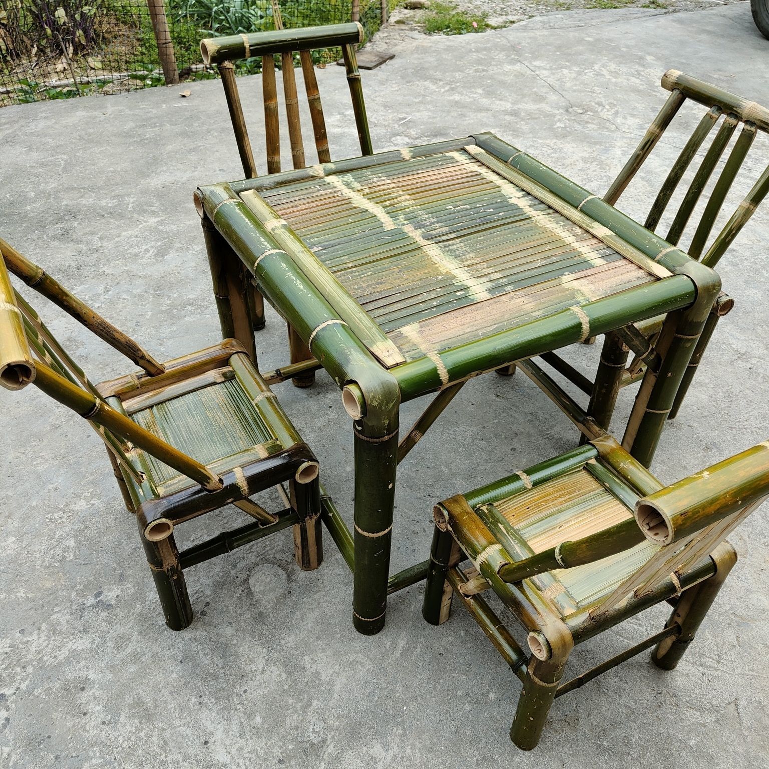 중국식 구식 테이블, 대나무 테이블과 의자, 야외 테이블, 차 테이블, 식탁, 커피 테이블, 사무실 냄비 대나무 테이블 풀 세트