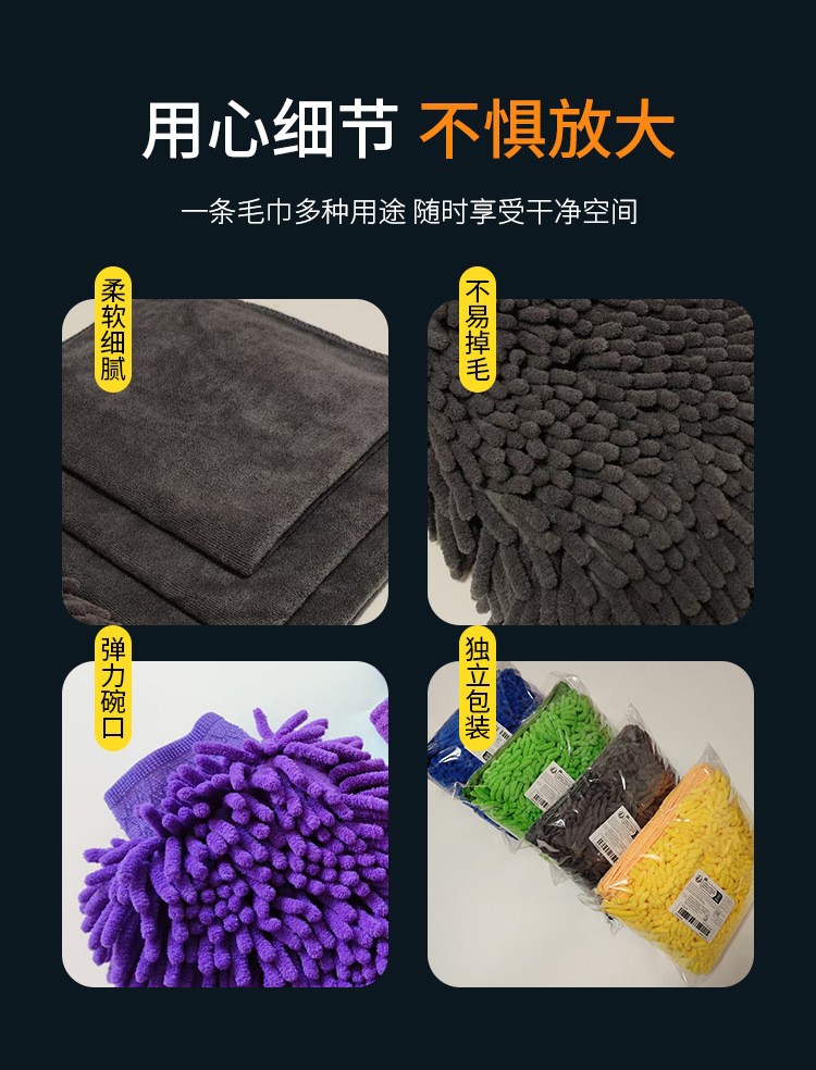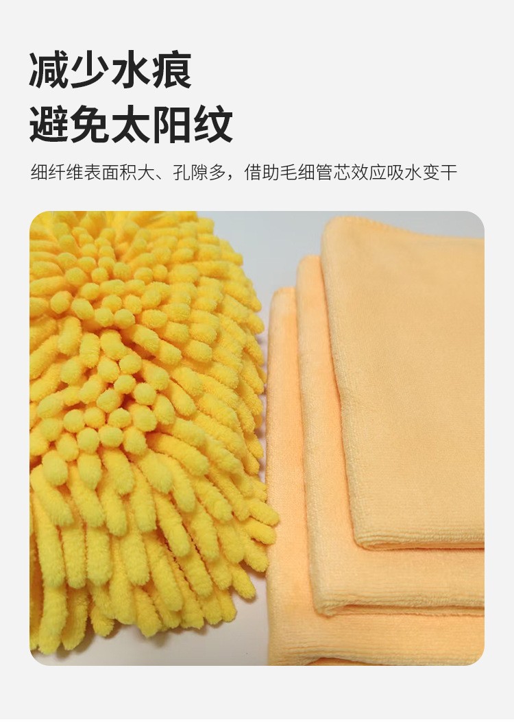 자동차 청소 용품 4종 세트, 두꺼운 섬유 수건, 양면 셔닐 자동차 닦는 장갑, 국경 간 라벨링스토어 가기