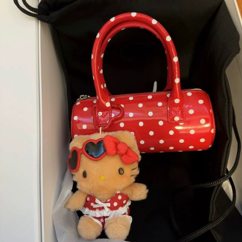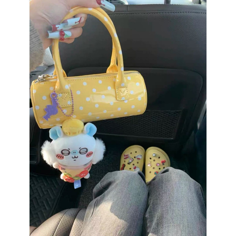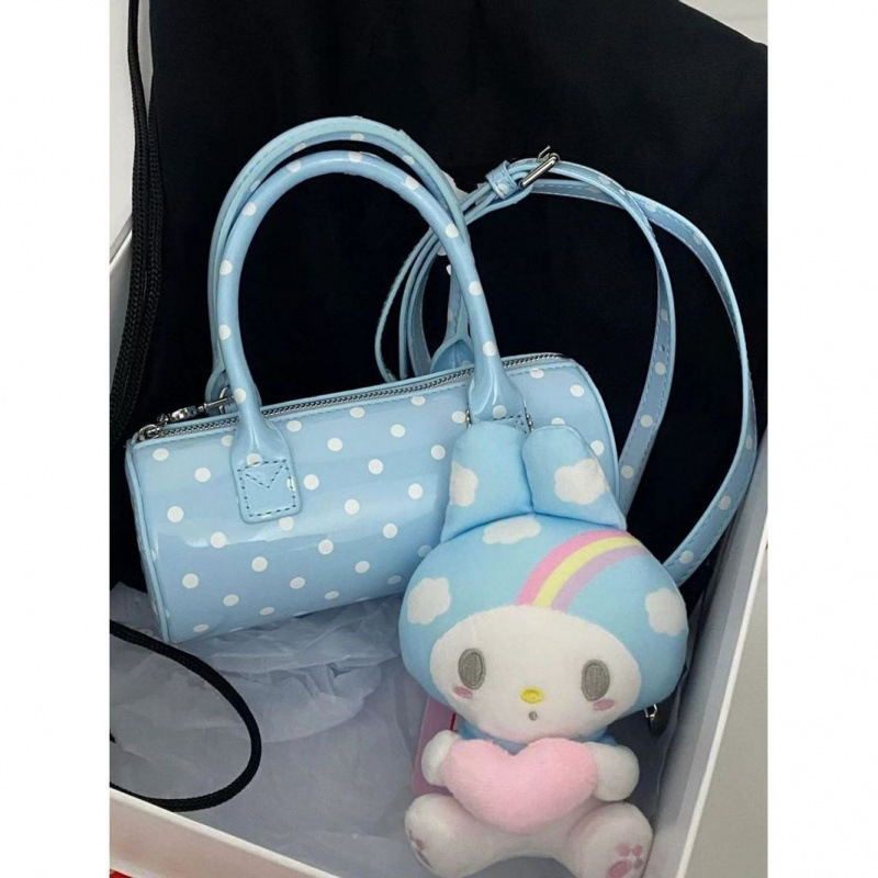 여름 작은 신선한 파란색 폴카 도트 핸드백 2025 새로운 소녀 도파민 핸드 휴대용 원통형 가방 크로스 바디 작은 가방