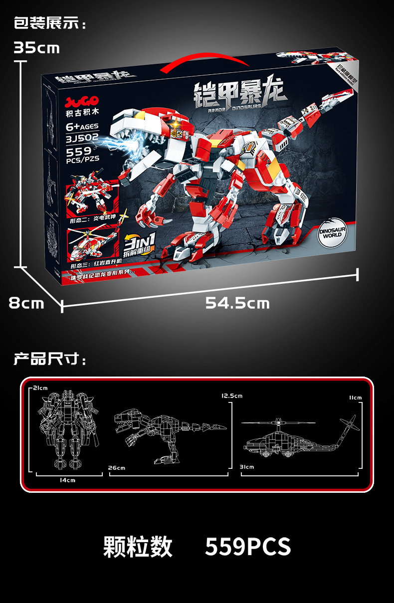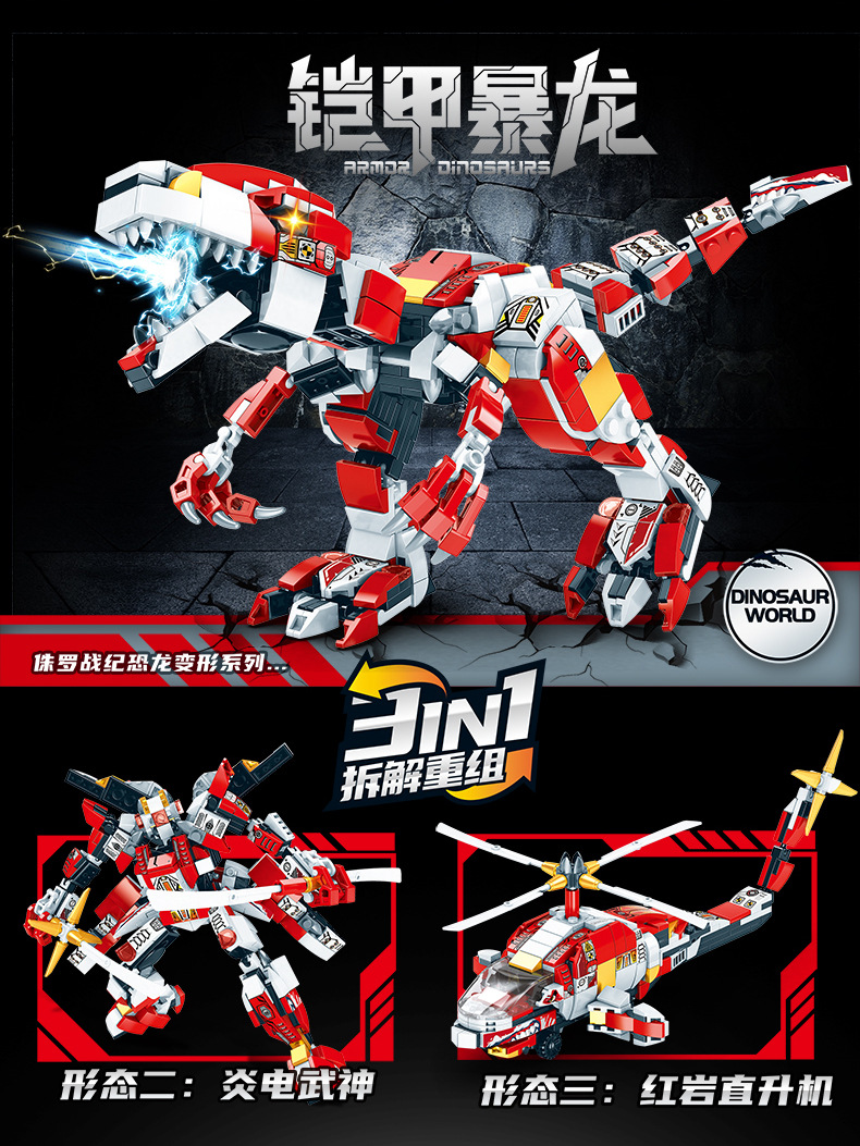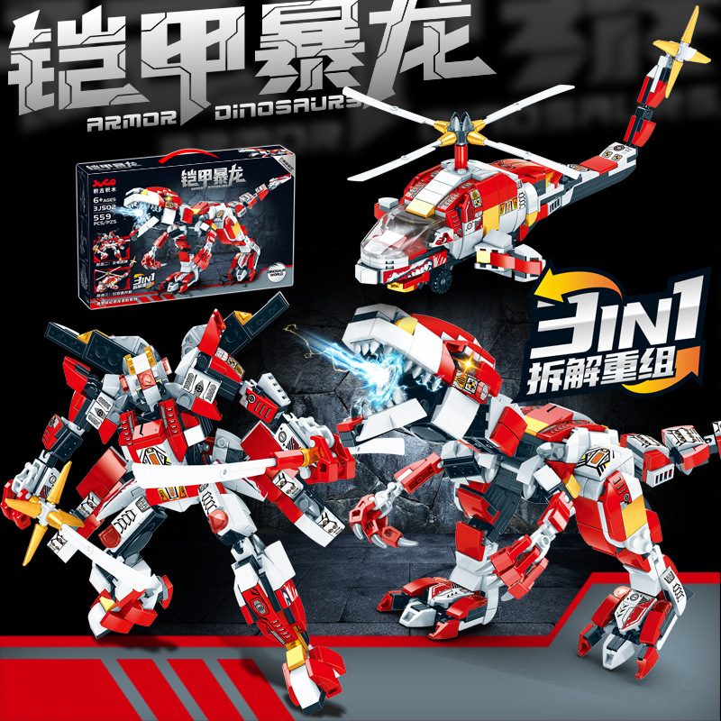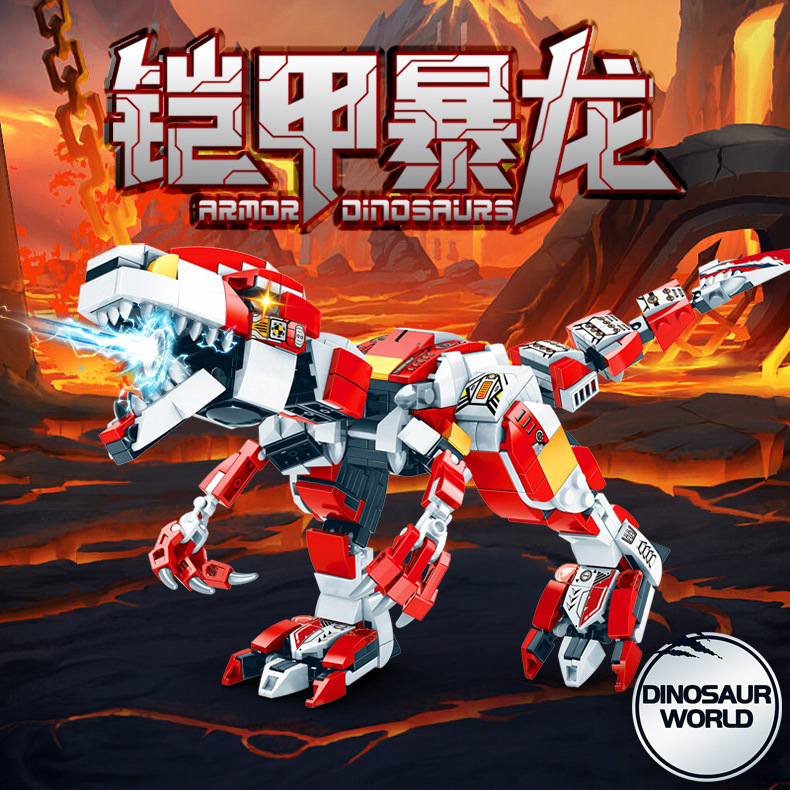 어린이 교육용 빌딩 장난감 빌딩 블록 변형 메카 전사 로봇 갑옷 티라노사우루스 3가지 형태 선물 제공