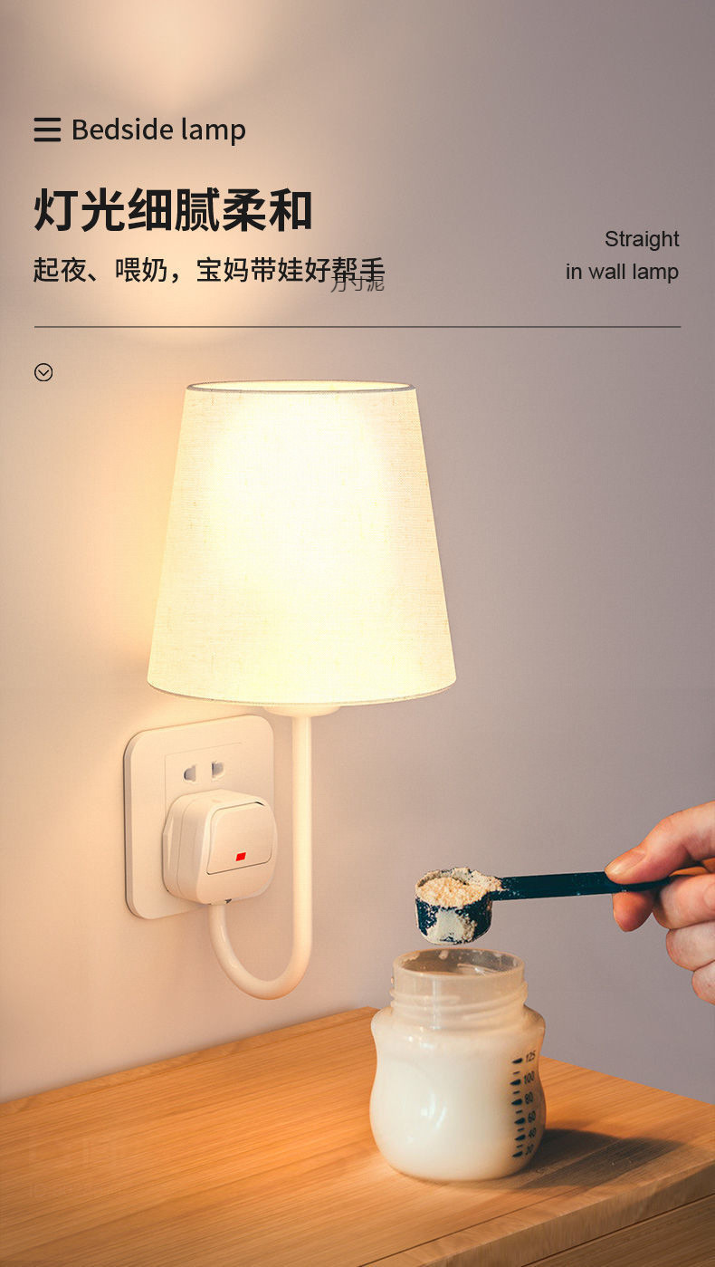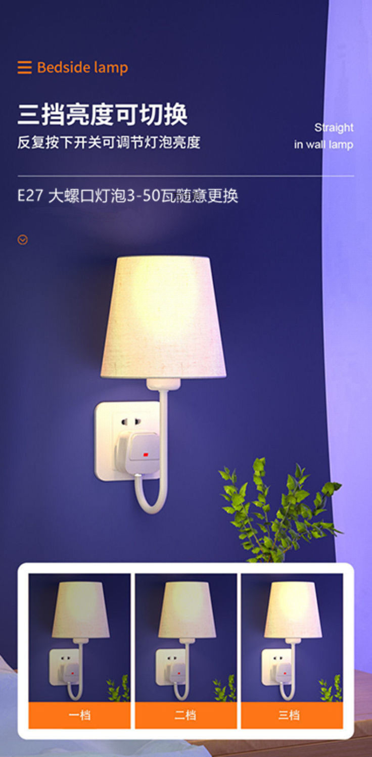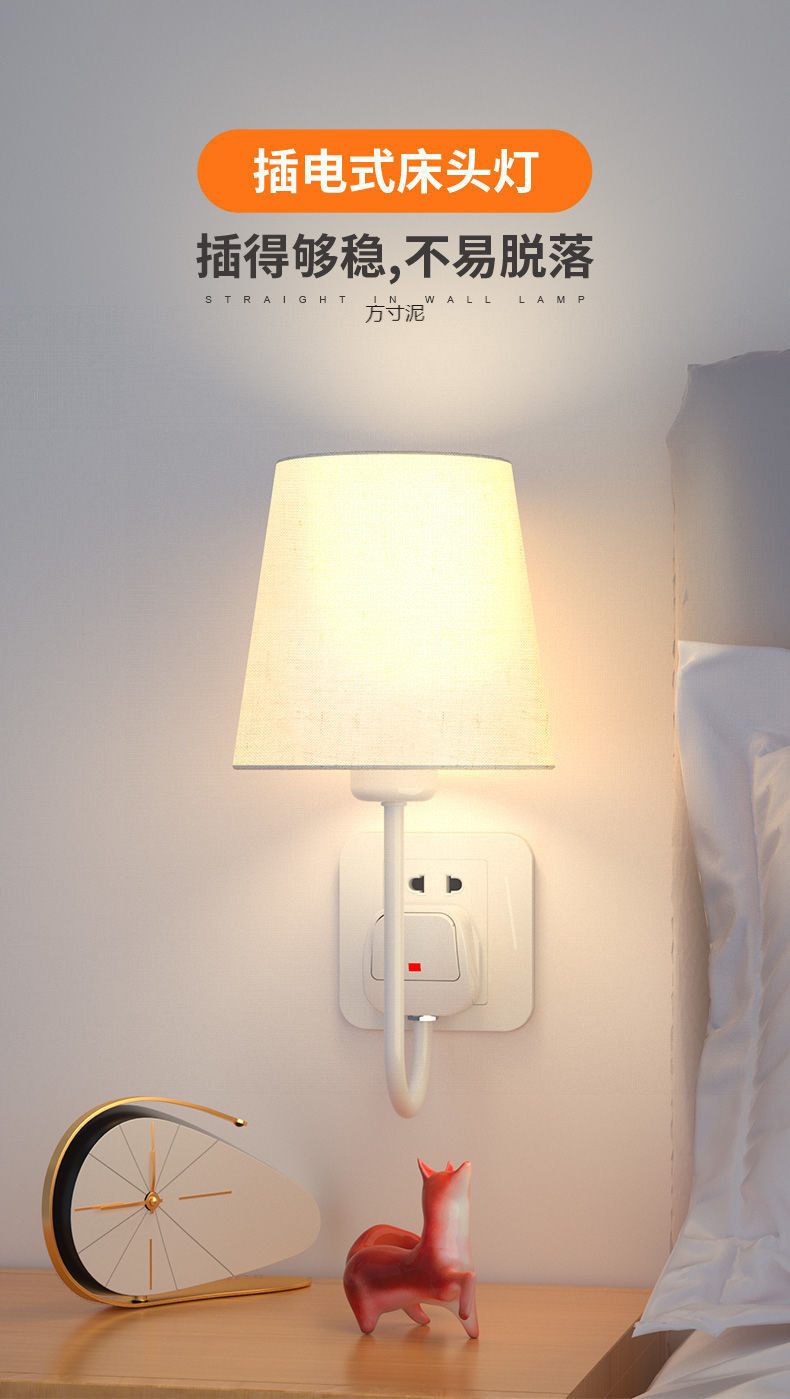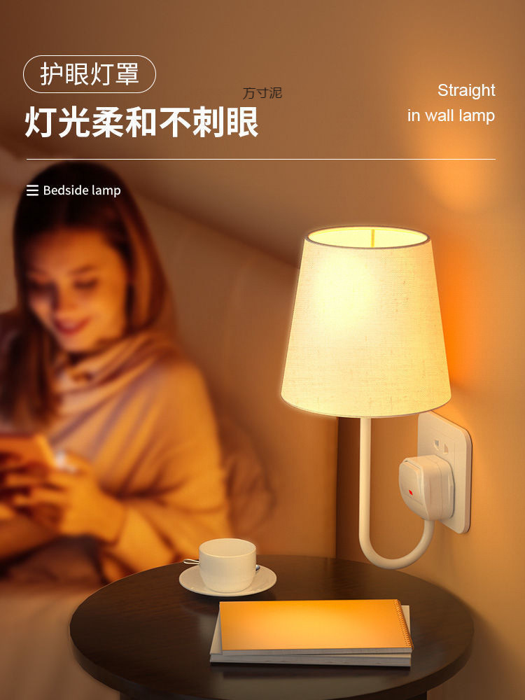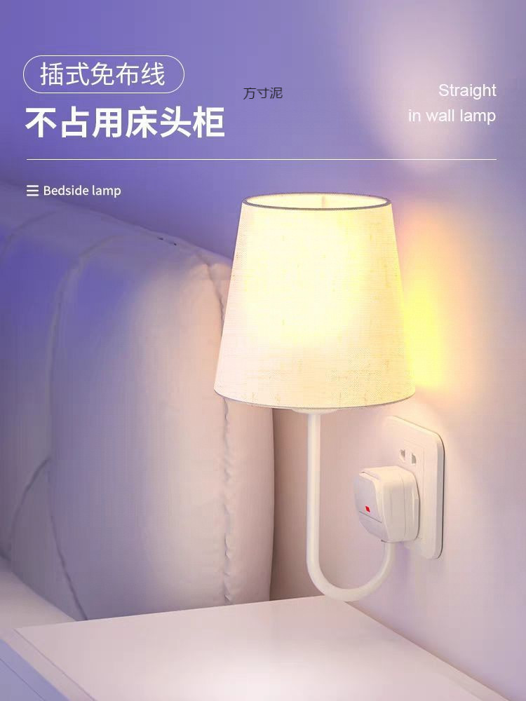 플러그인 침대 옆 벽 램프, 배선 없음, 설치 없음, 펀치 없음, 침대 옆 램프, 침실 부드러운 조명, 소켓형 야간 조명