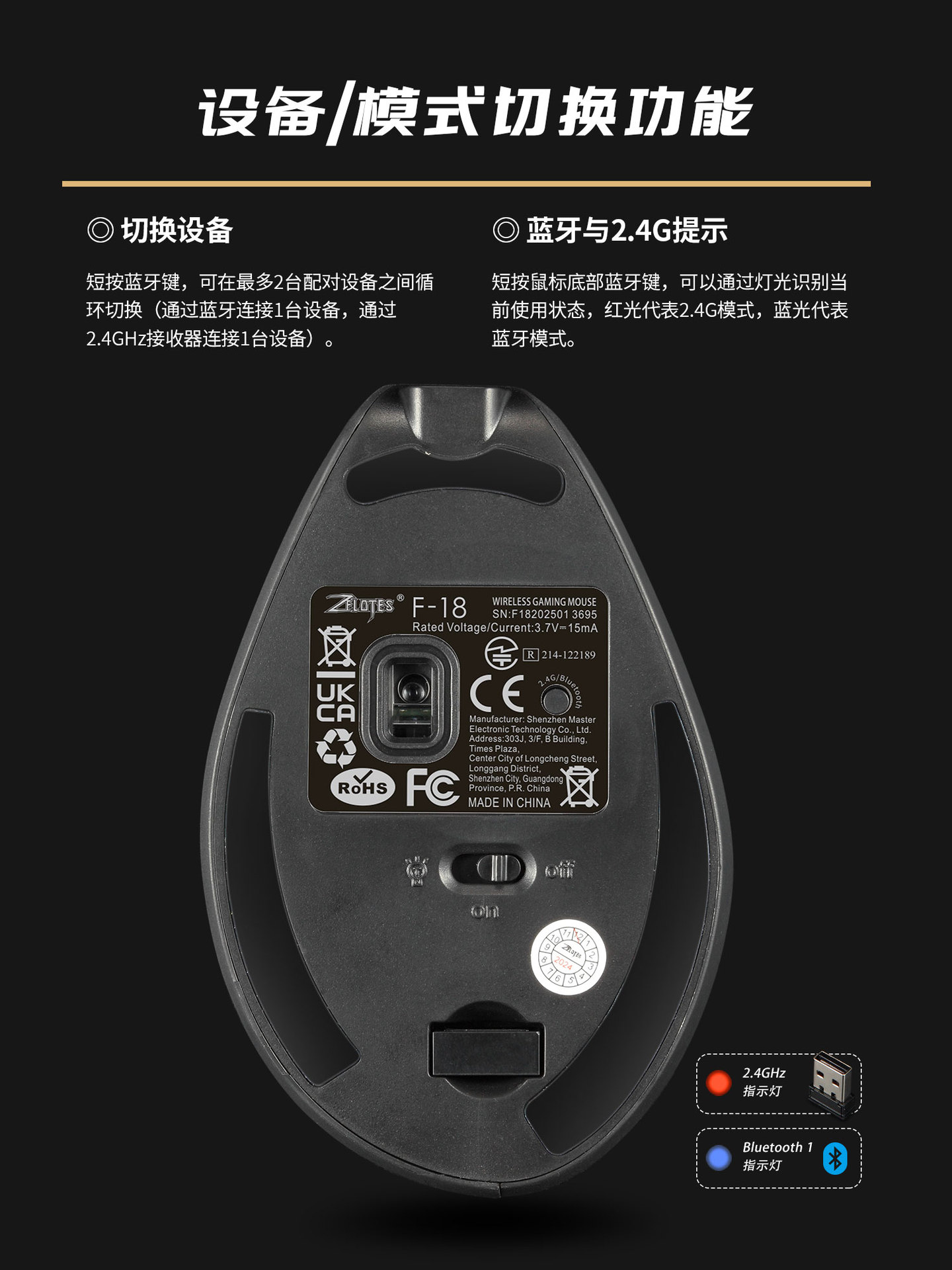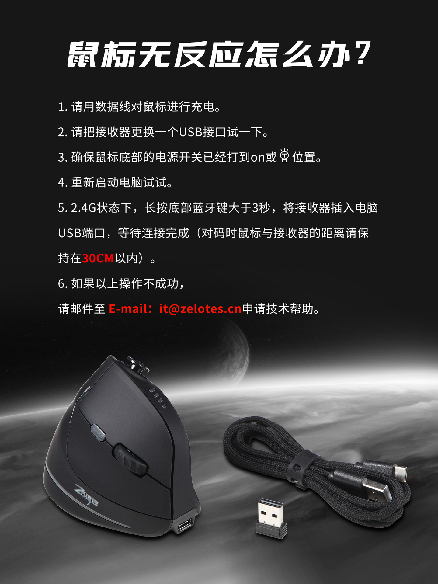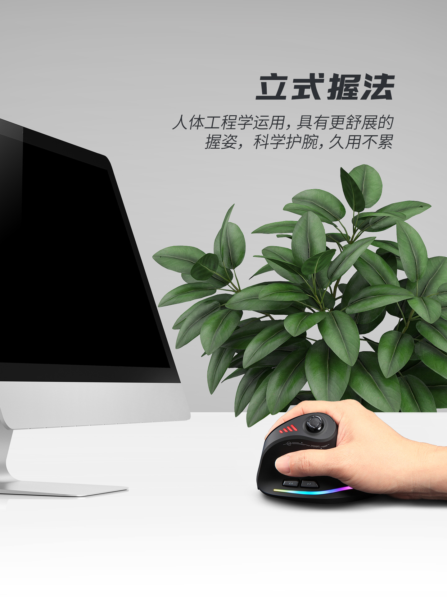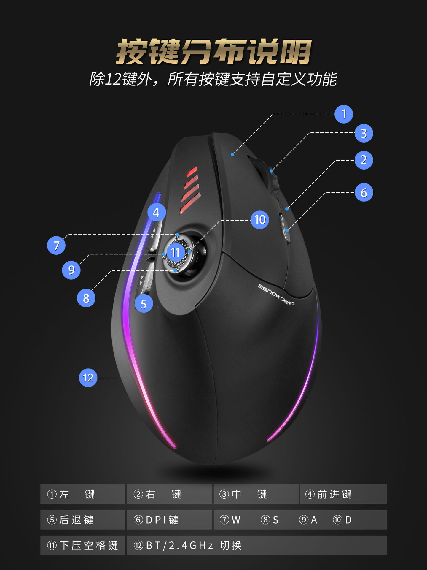 • 로커 충전식 백라이트가 있는 3모드 수직 마우스 검정색