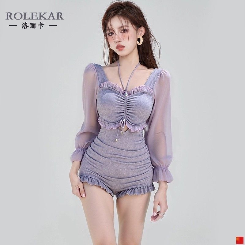 뚱뚱한 mm를 위한 로리카 수영복, 큰 사이즈, 배를 커버하고 날씬해 보이고, 보수적인 메쉬 긴팔, 살이 살찐 소녀를 위한 살 커버, 2025 새로운 스타일스토어 가기