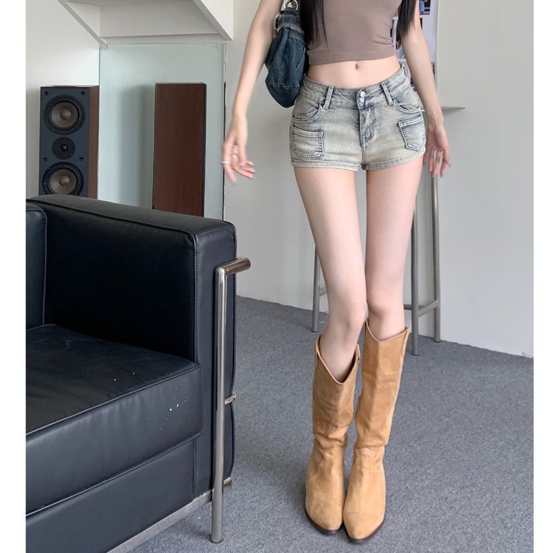 아메리칸 핫걸 로우 웨이스트 데님 슈퍼 쇼츠 여성 여름 슬리밍 힙 핫팬츠 레트로 라이트 컬러 스트레이트 팬츠