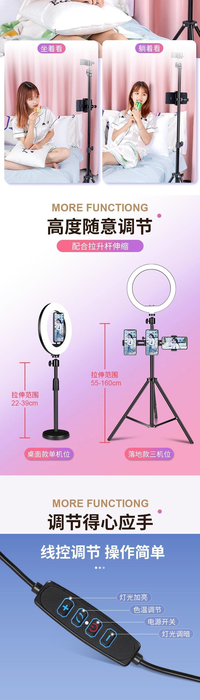 뷰티 라이브 필 라이트 휴대 전화 홀더 삼각대 촬영 실내 사진 앵커 데스크탑 셀카 스틱 지지대