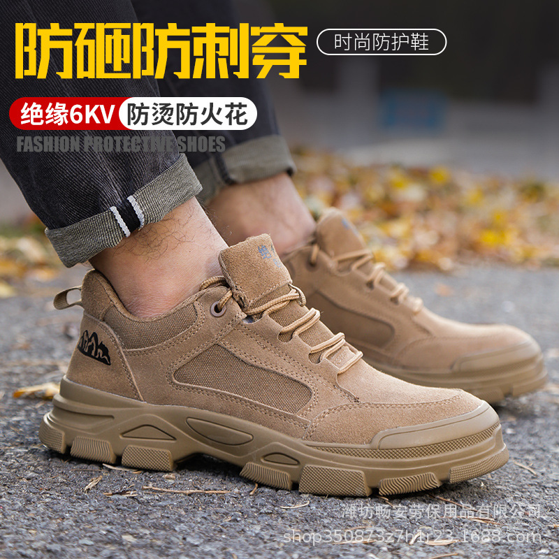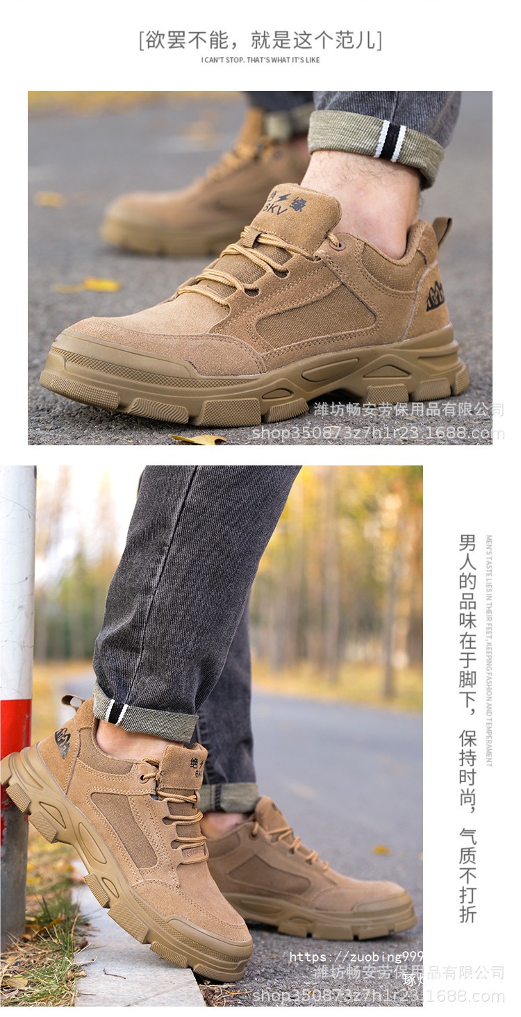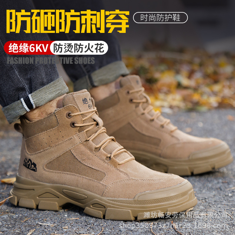 노동 보호 신발 플라스틱 강철 발가락 안티 스매싱 안티 펑크 절연 6KV 소 가죽 통기성 내마모성 경량 작업 신발 도매스토어 가기