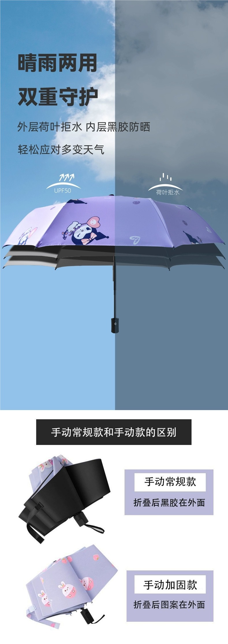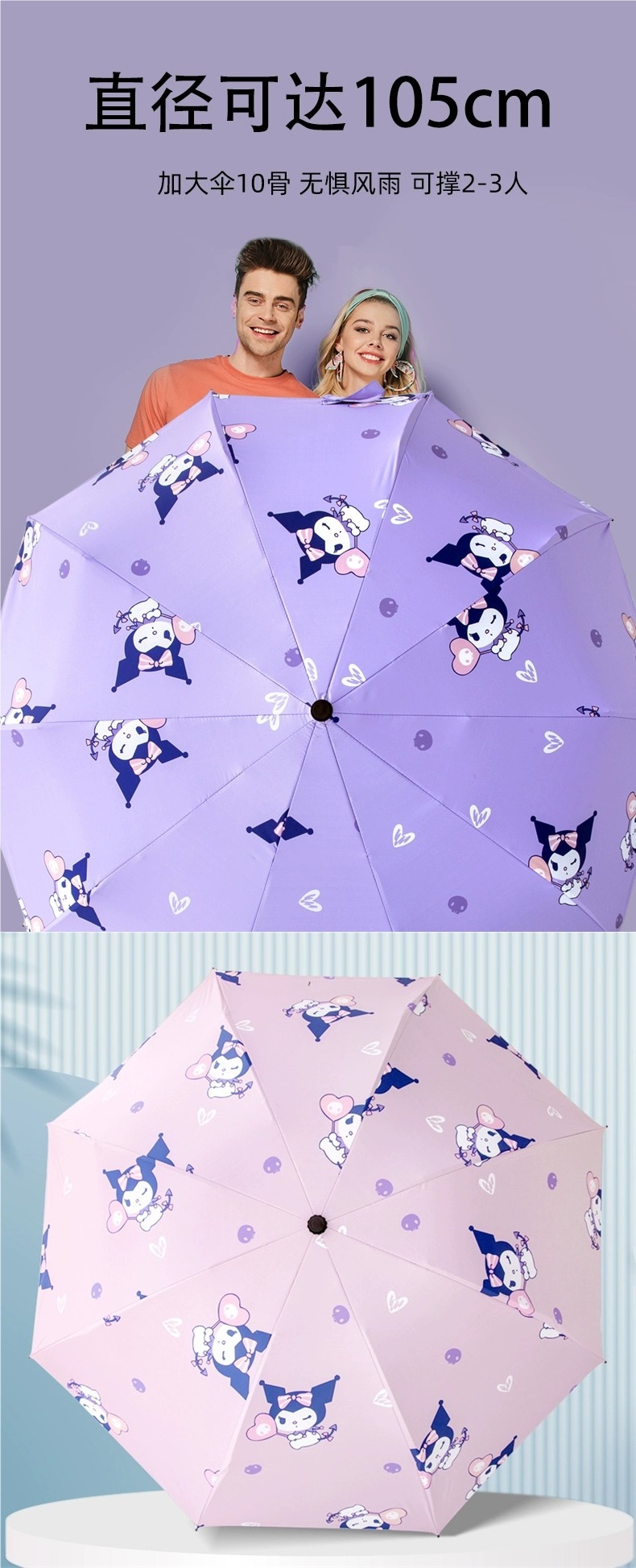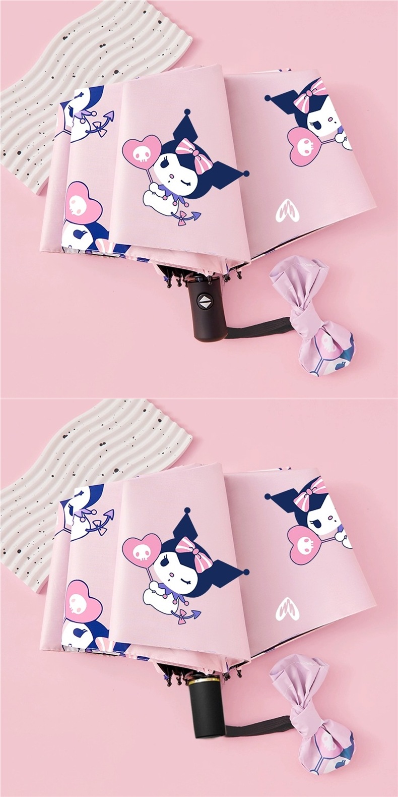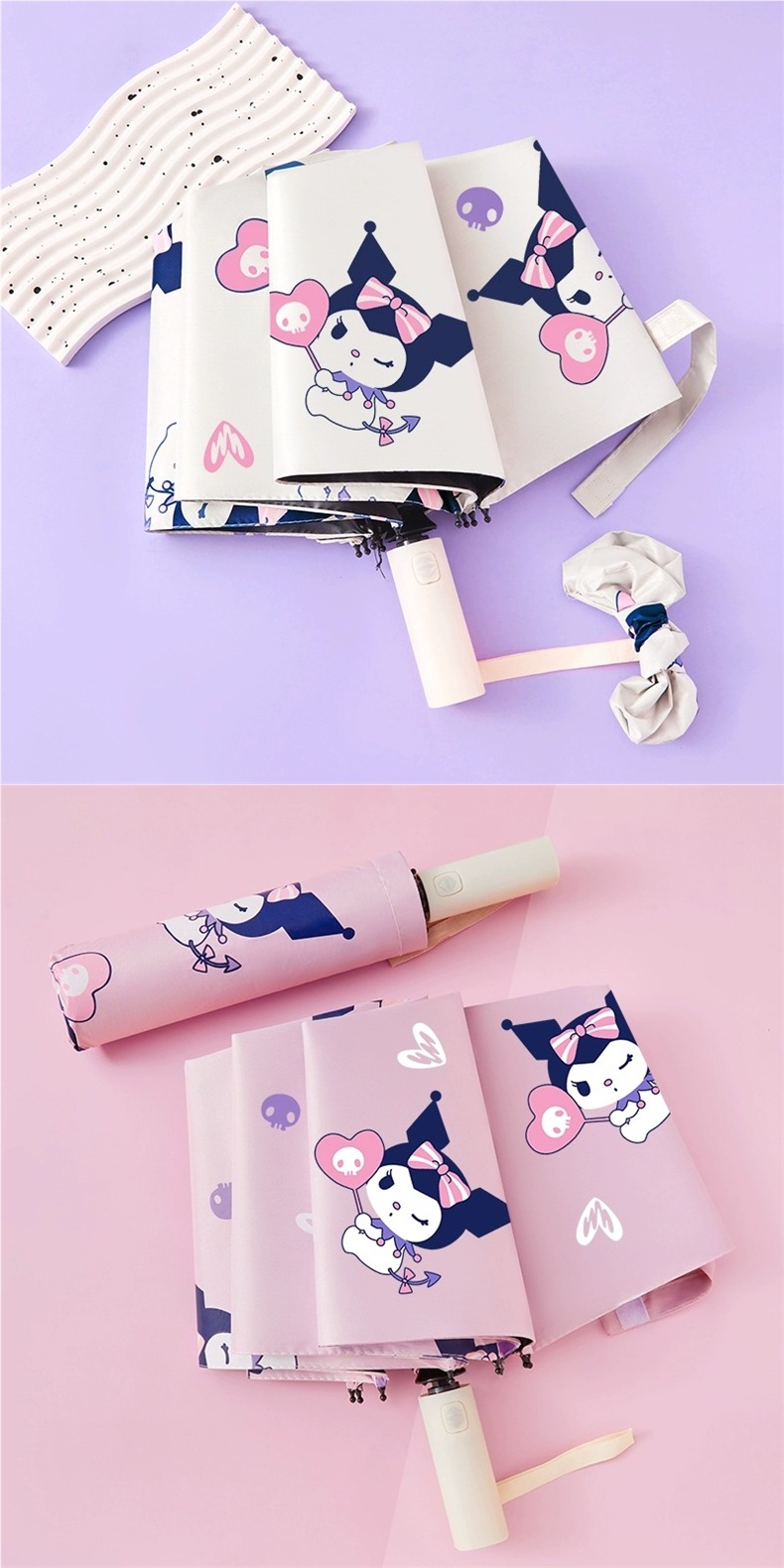 여학생을 위한 쿠로미 전자동 우산, 비가 오나 눈이 오나 접이식 차양, 자외선 차단, 자외선 차단 기능이 있는 우산
