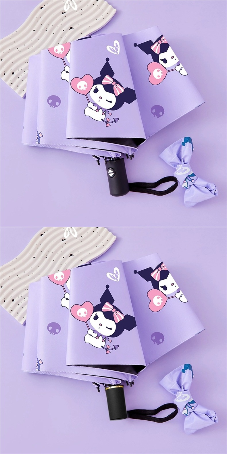 여학생을 위한 쿠로미 전자동 우산, 비가 오나 눈이 오나 접이식 차양, 자외선 차단, 자외선 차단 기능이 있는 우산스토어 가기