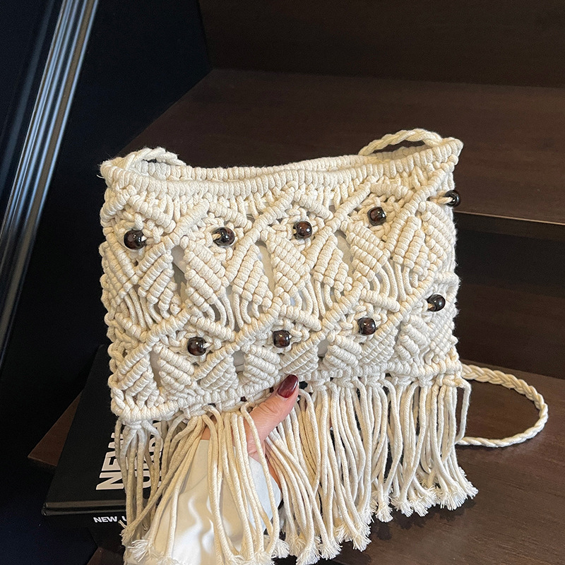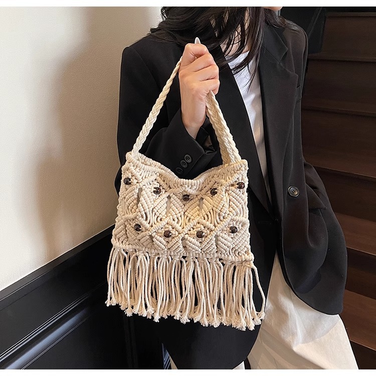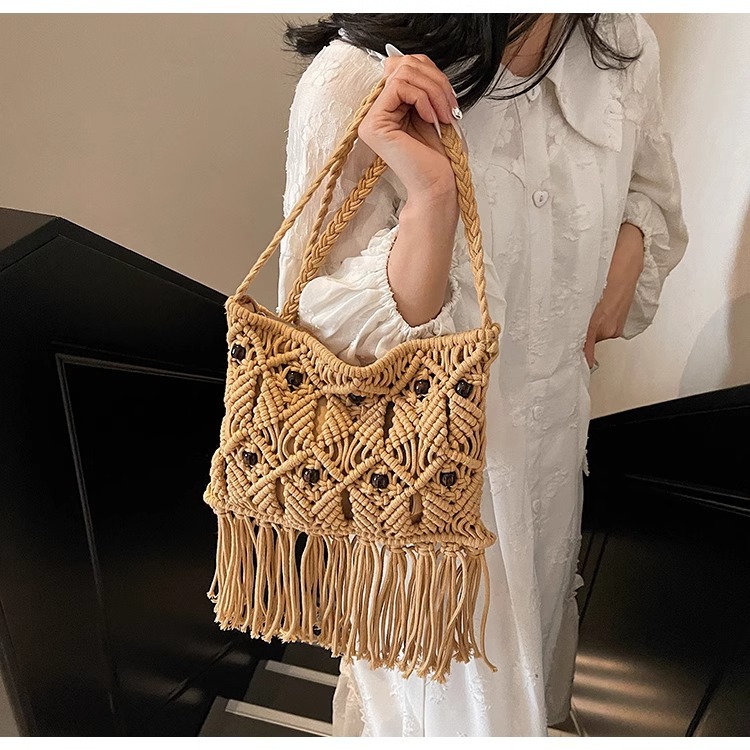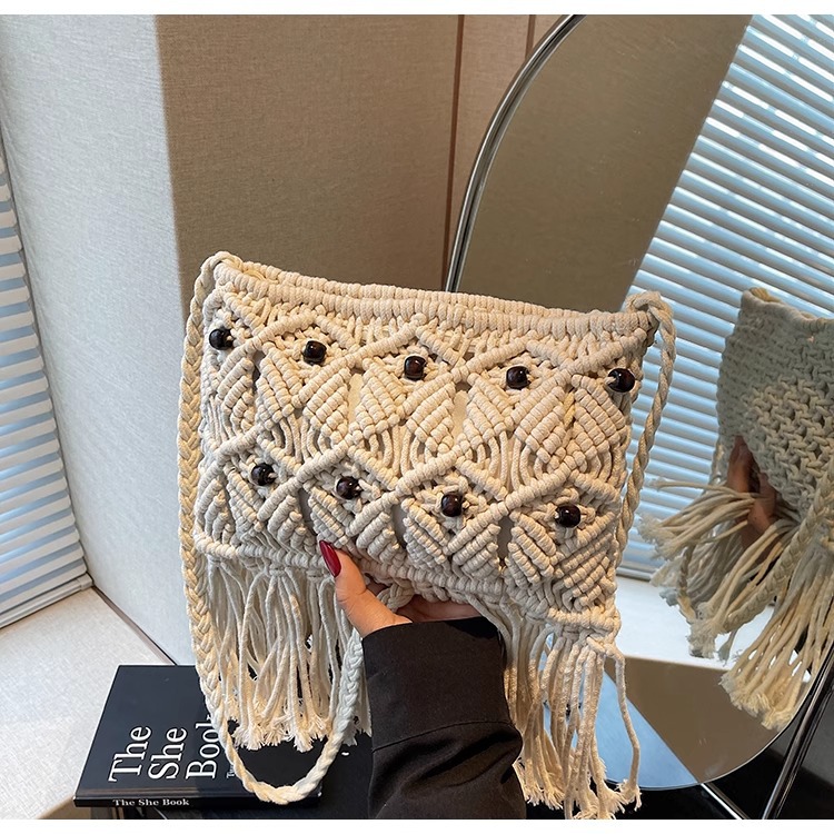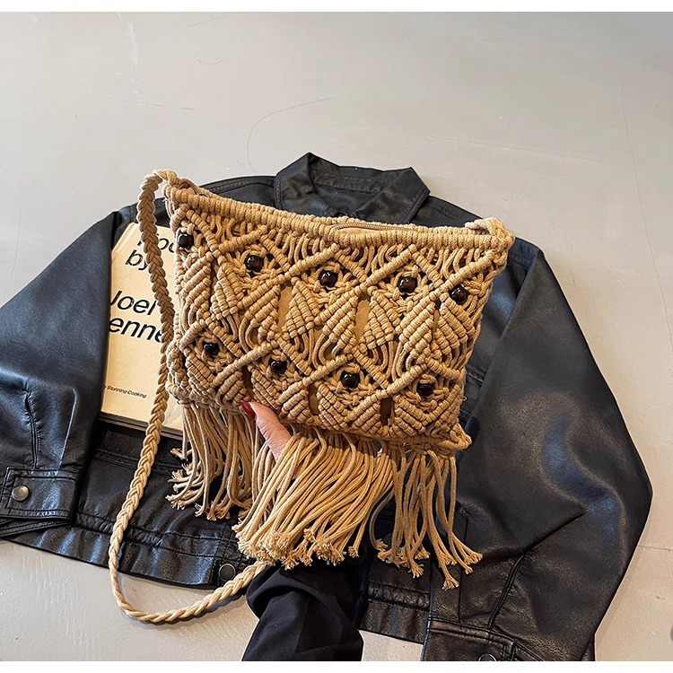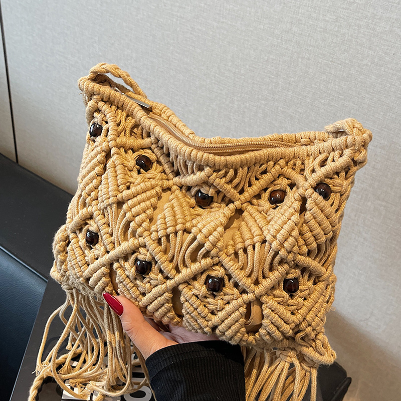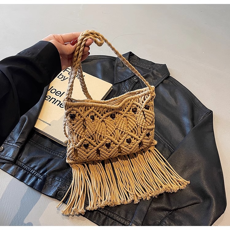 2025년 여성용 로프 뜨개질 가방, 프린지 장식 숄더백, 해변 가방, 고급스러운 가방, 트렌디한 버킷백