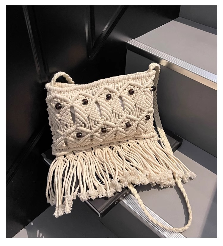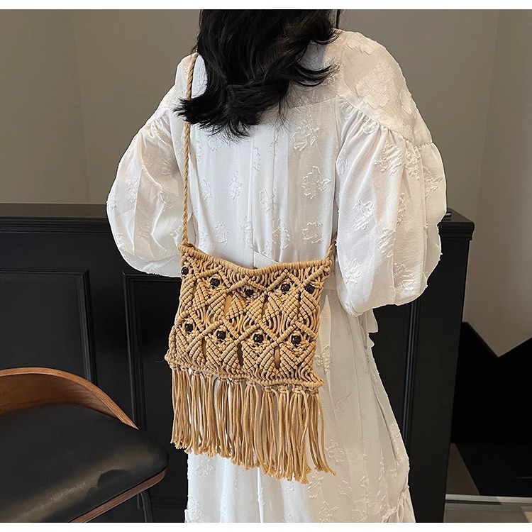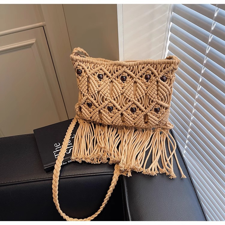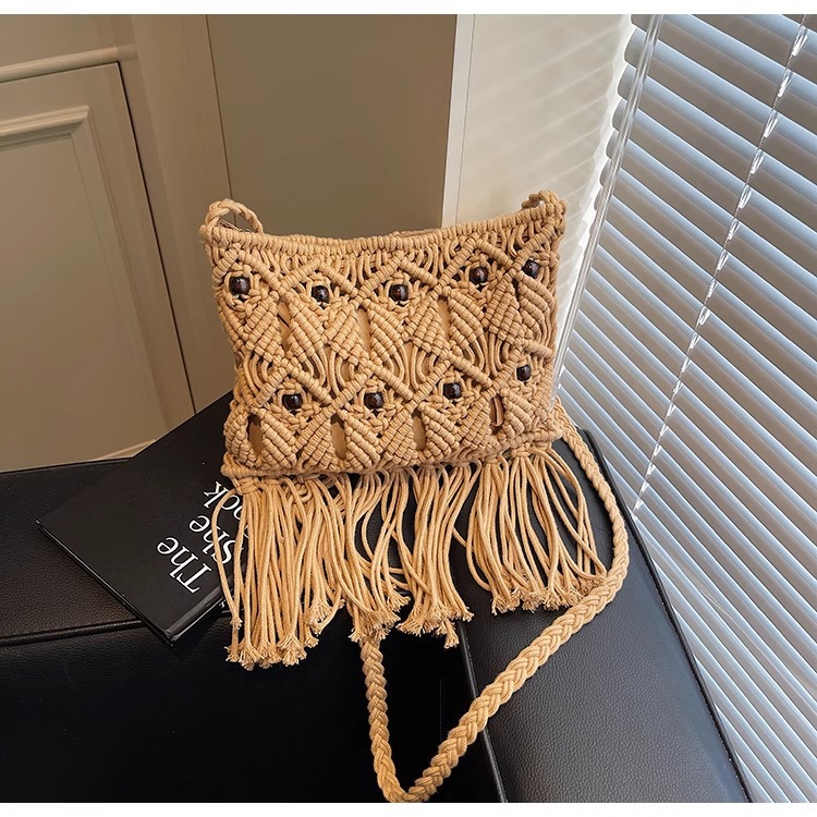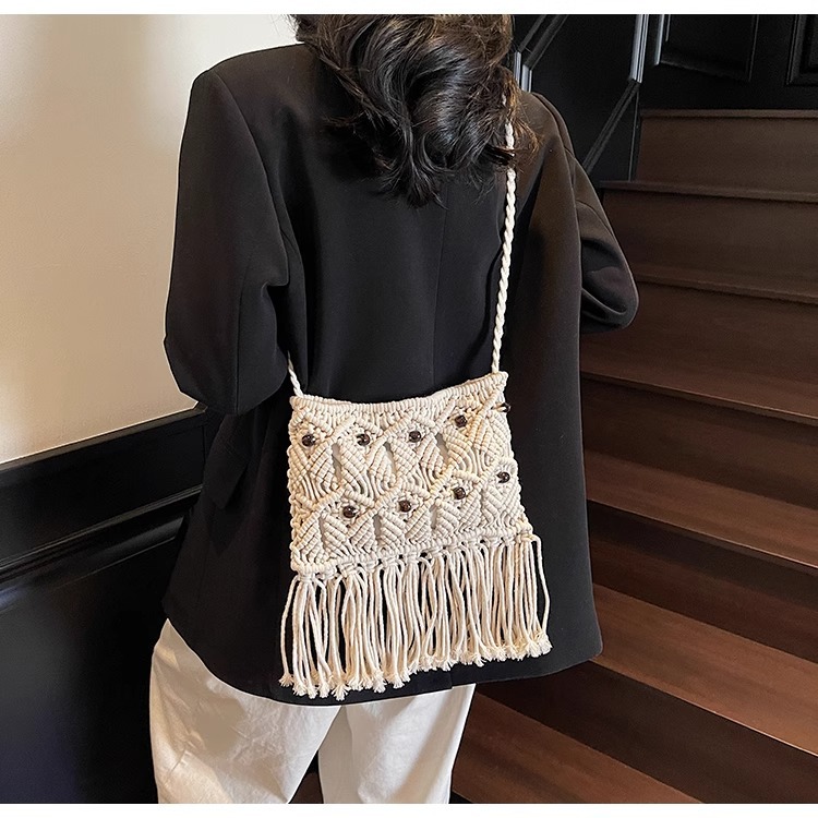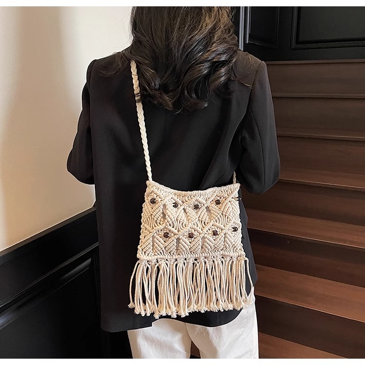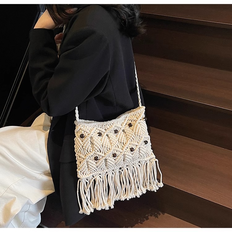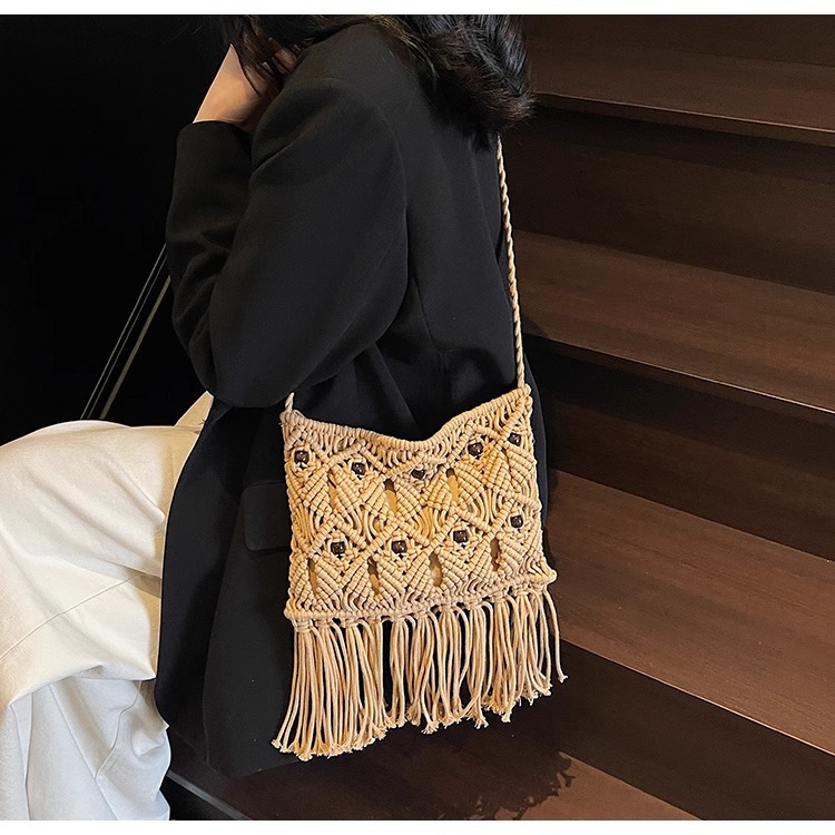 2025년 여성용 로프 뜨개질 가방, 프린지 장식 숄더백, 해변 가방, 고급스러운 가방, 트렌디한 버킷백