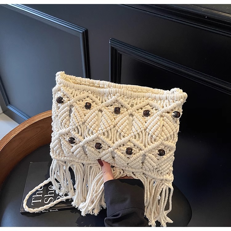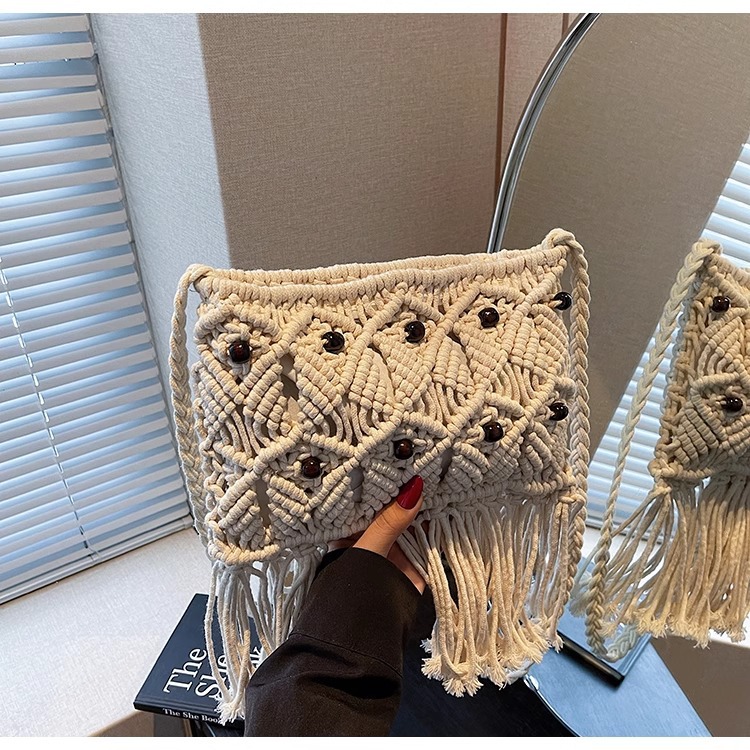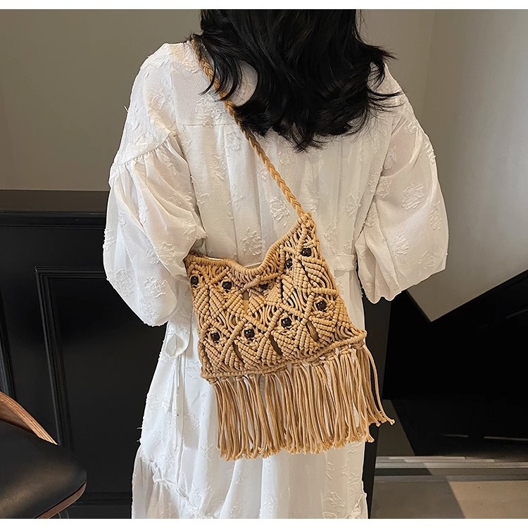 2025년 여성용 로프 뜨개질 가방, 프린지 장식 숄더백, 해변 가방, 고급스러운 가방, 트렌디한 버킷백스토어 가기
